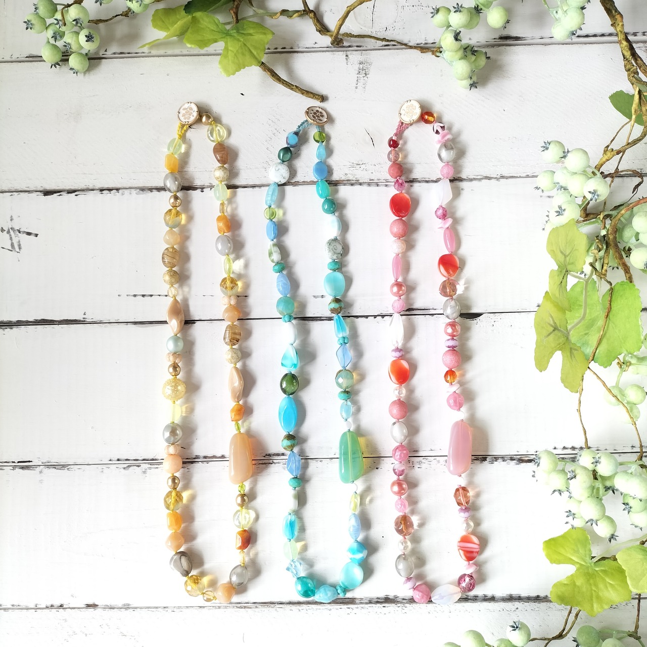 年代物ビーズの繊細な色合いや質感を活かして自然光で撮影しておりますが、