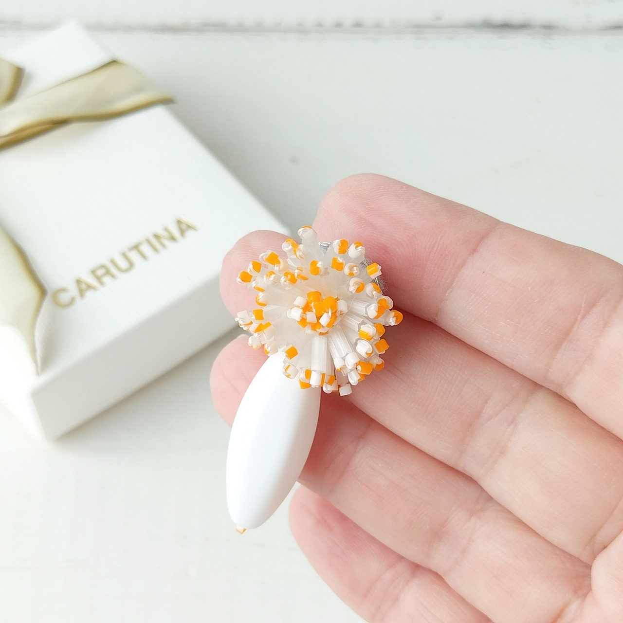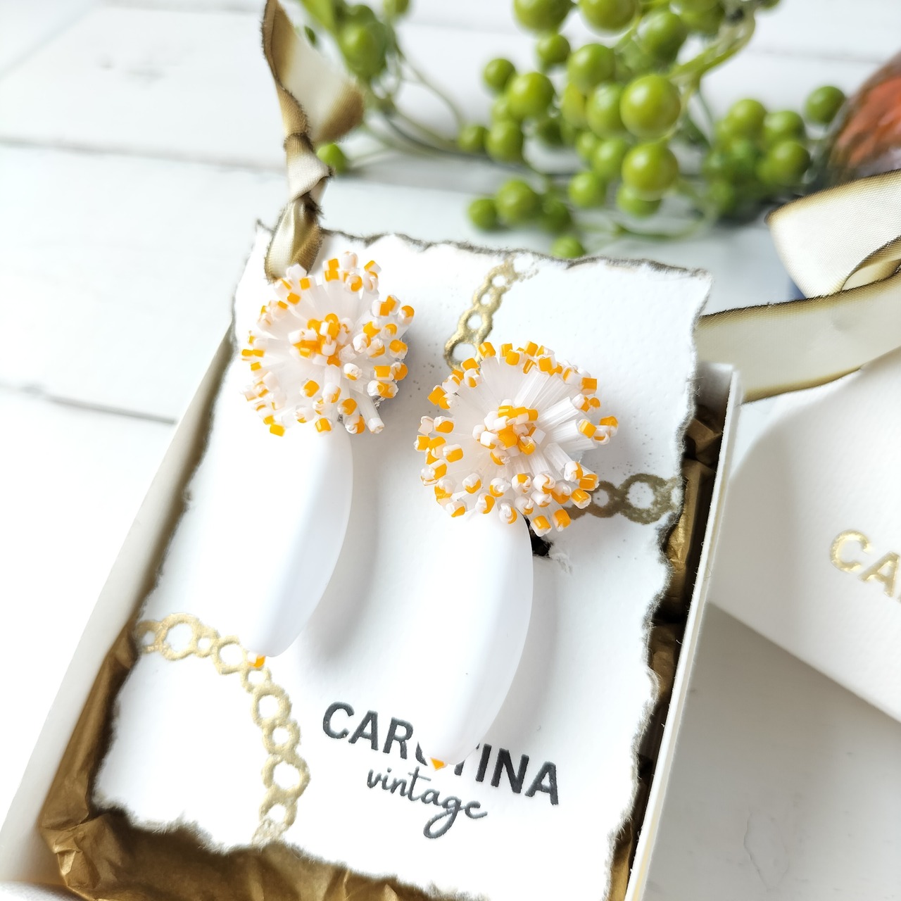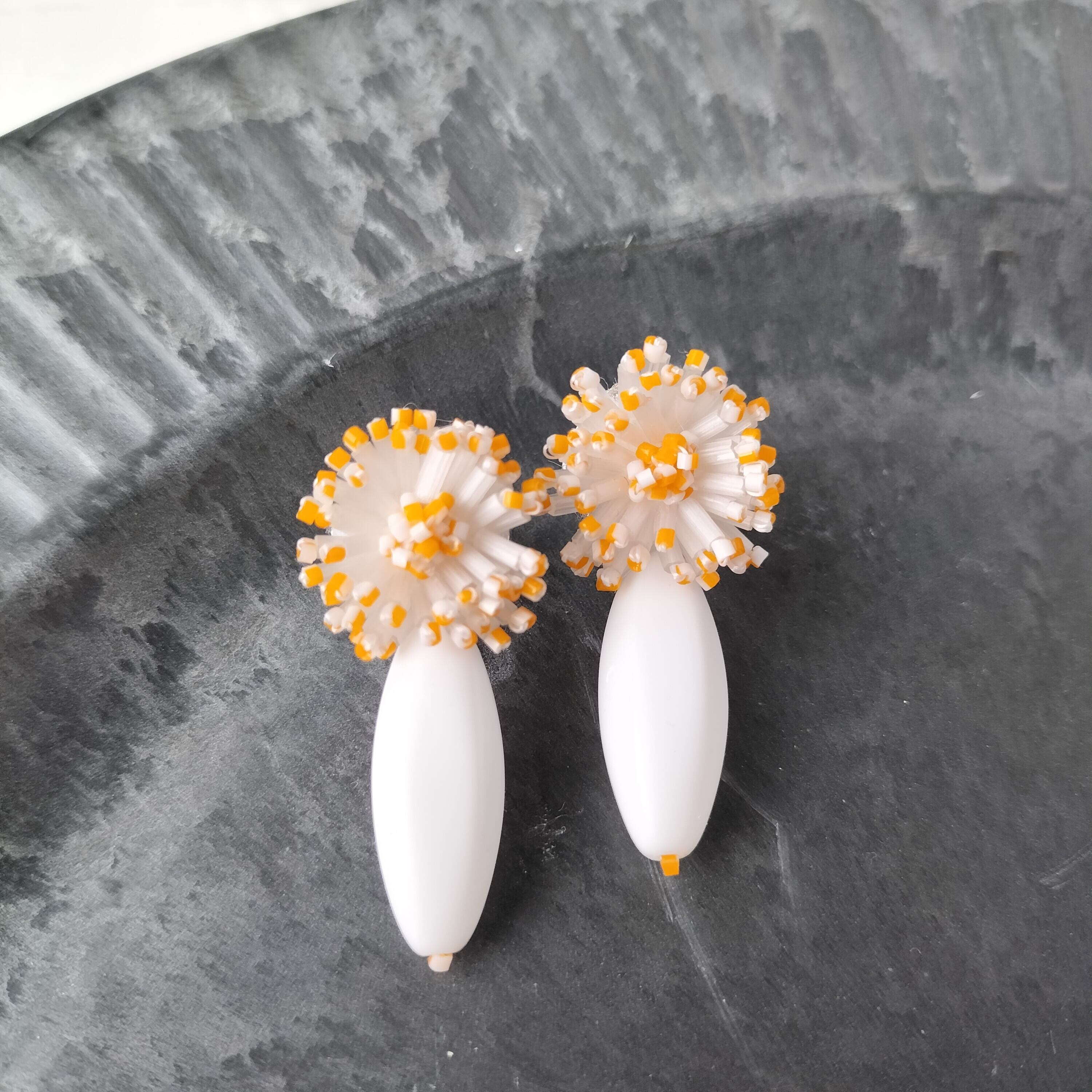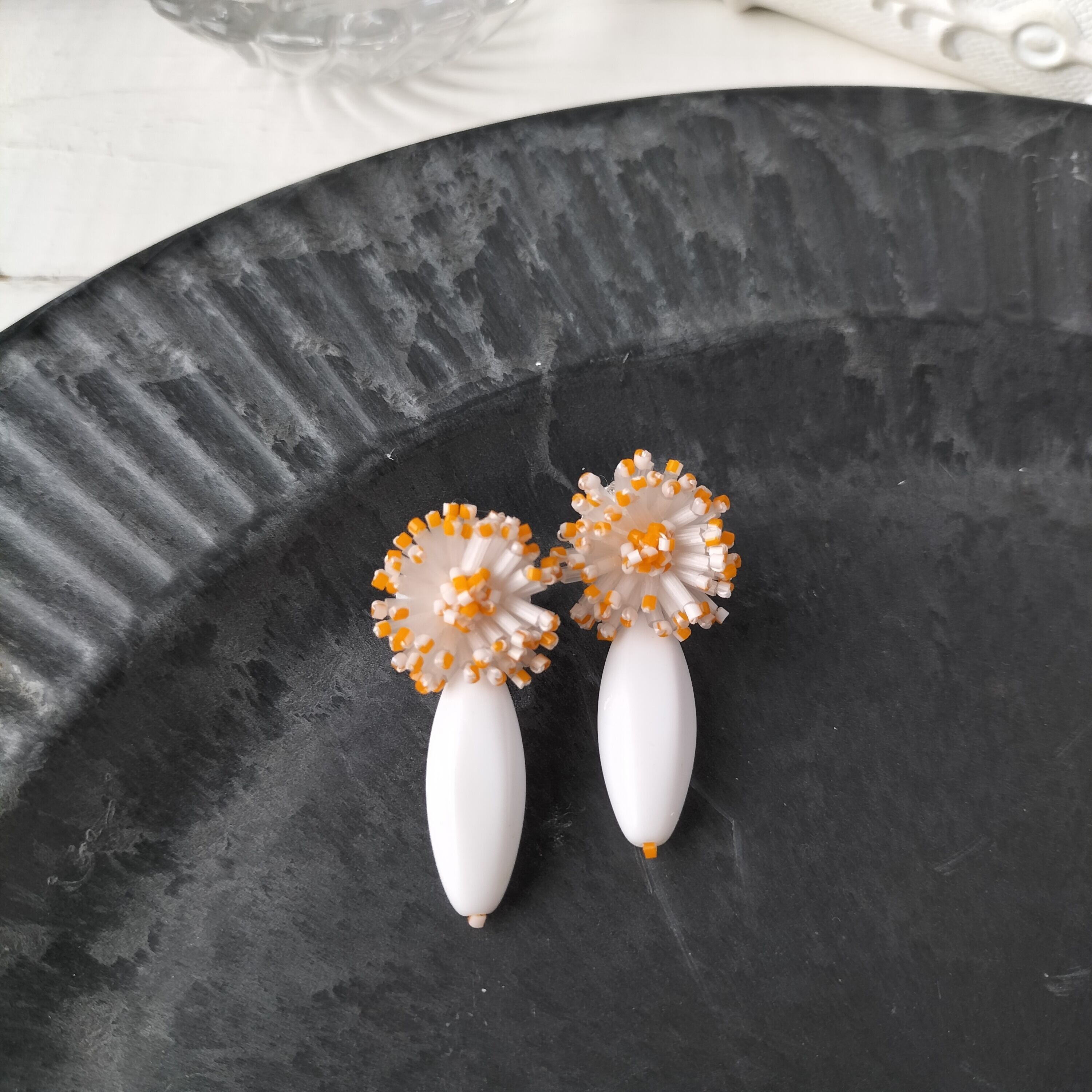 【フランス買付❣️】アンティークのオレンジビーズとヴィンテージのスノーホワイトが花咲くガーベラ イヤリング/ピアス アレルギー対応♡プレゼントにもおすすめ・ギフトボックス無料♡