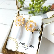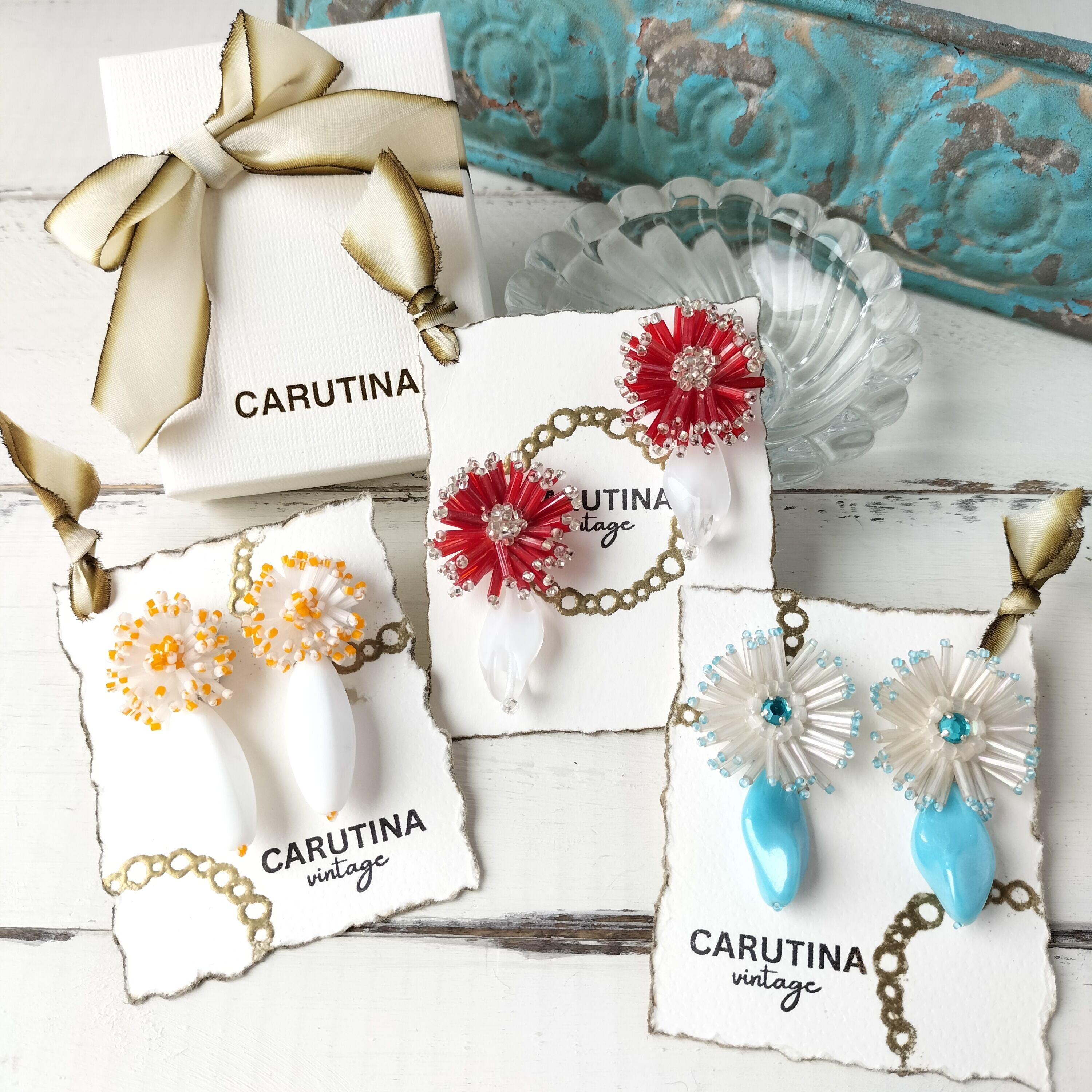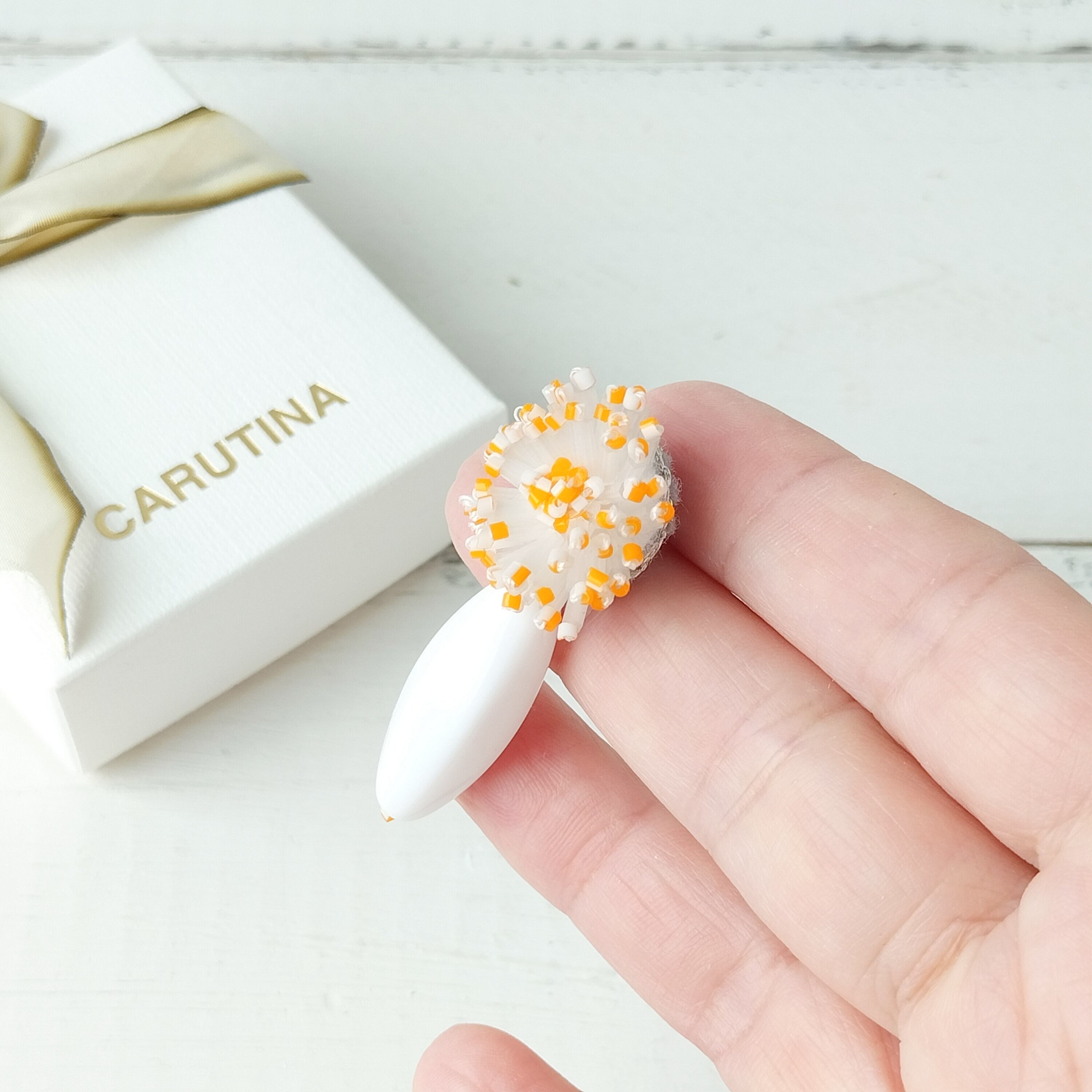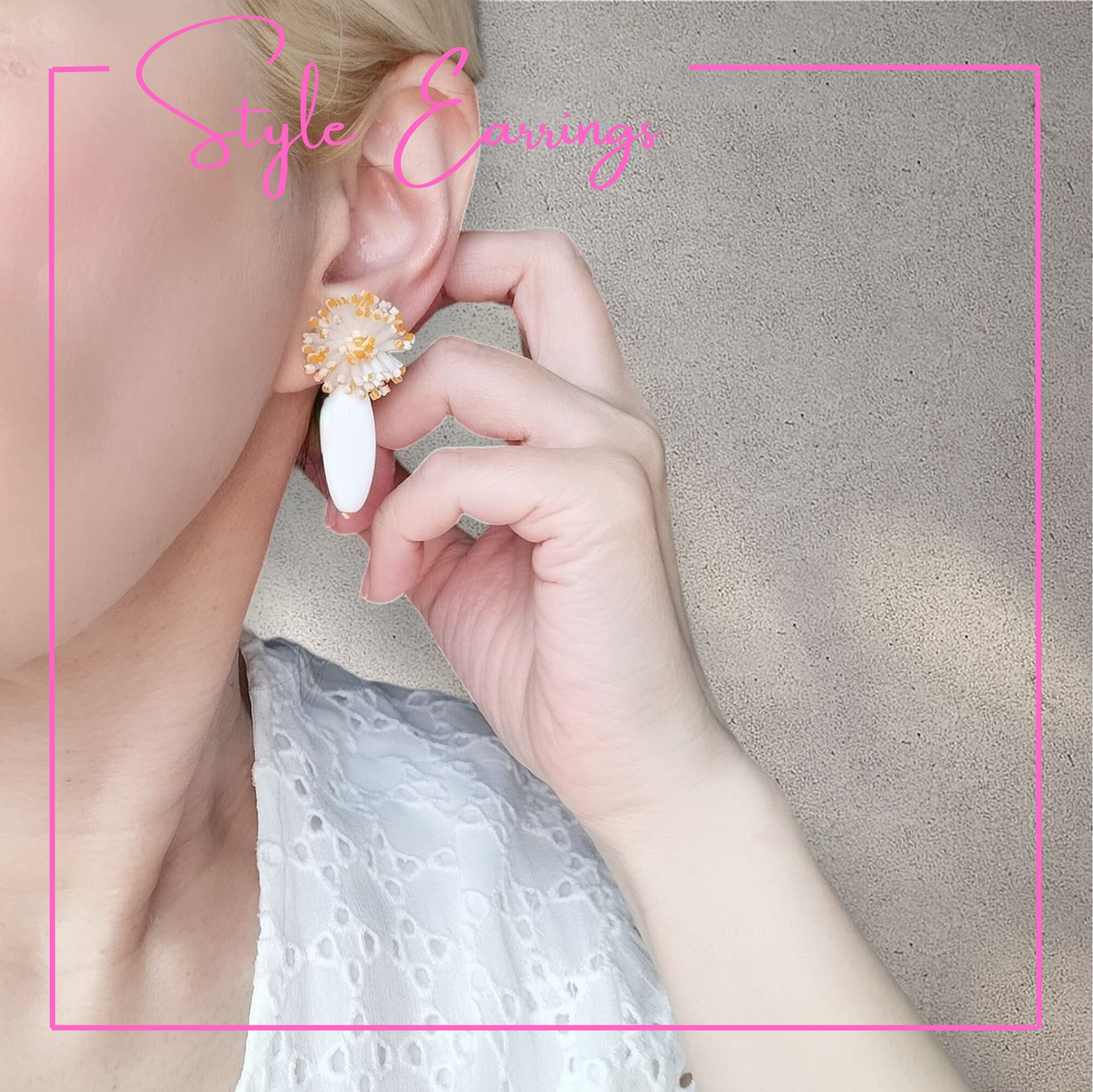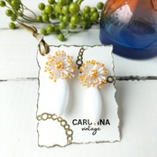 【フランス買付❣️】アンティークのオレンジビーズとヴィンテージのスノーホワイトが花咲くガーベラ イヤリング/ピアス アレルギー対応♡プレゼントにもおすすめ・ギフトボックス無料♡