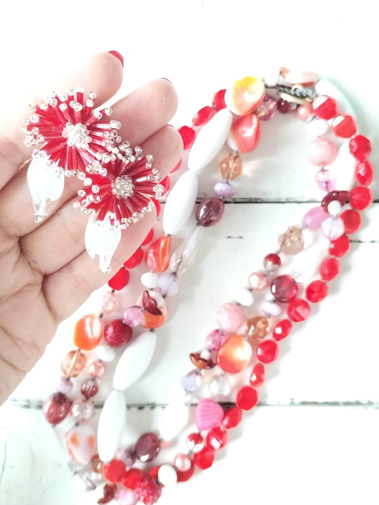 年代物ビーズの繊細な色合いや質感を活かして自然光で撮影しておりますが、