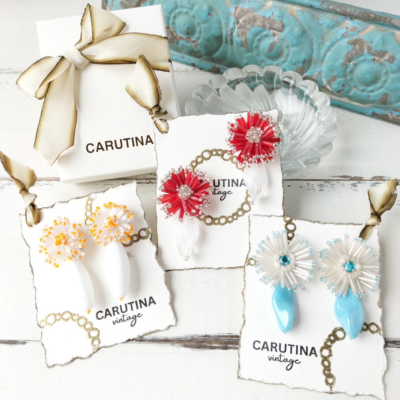大ぶりのモチーフはパリで買い付けたヴィンテージビーズ