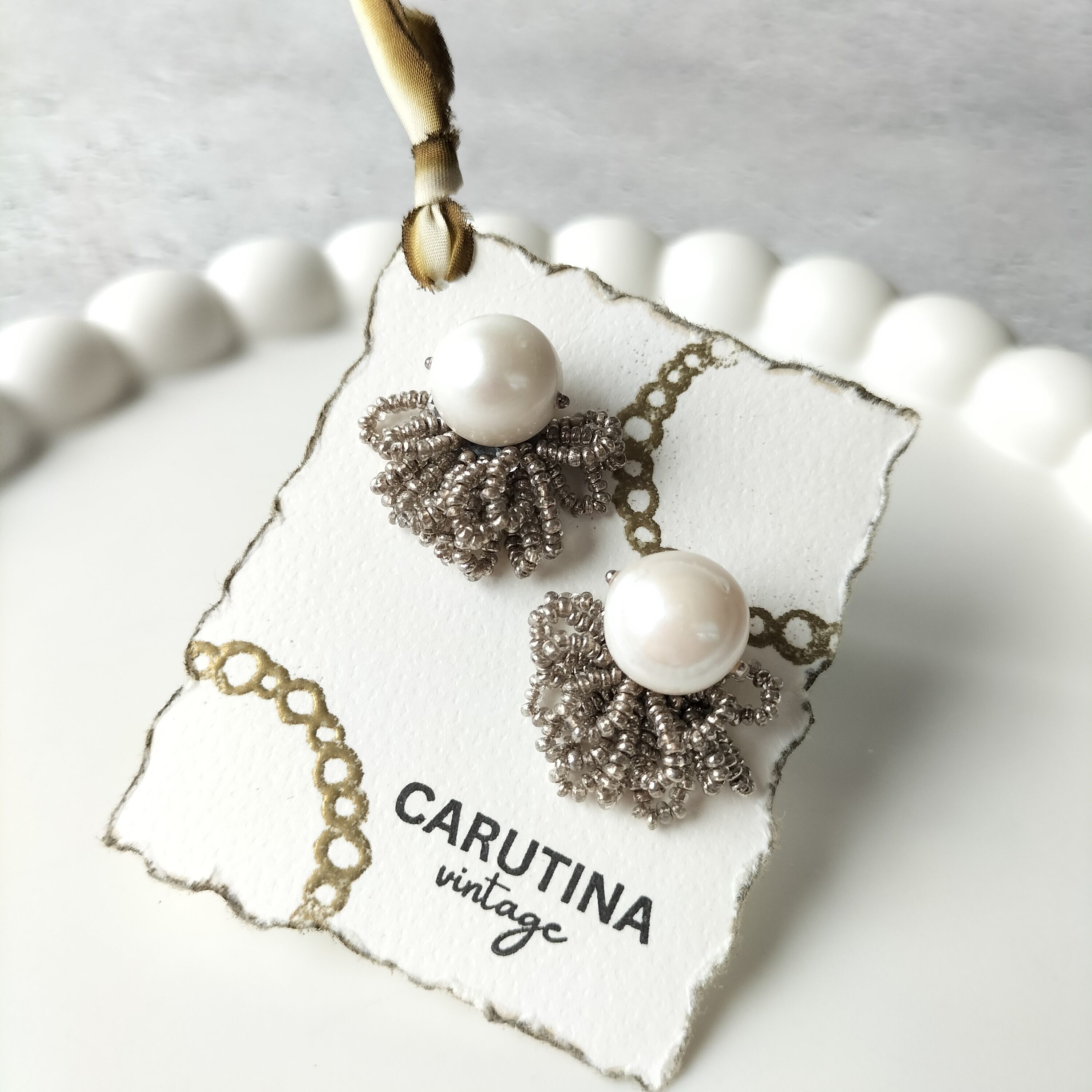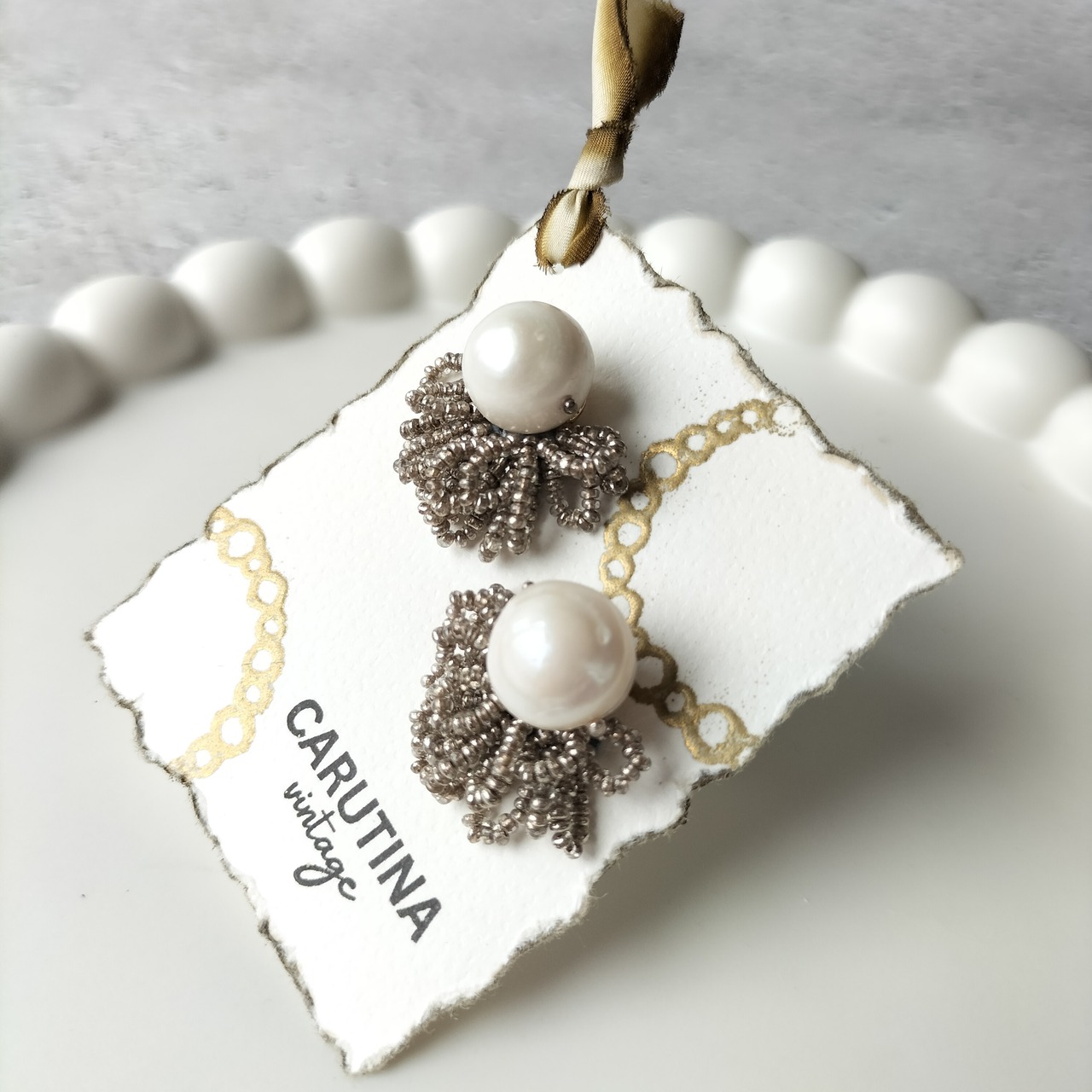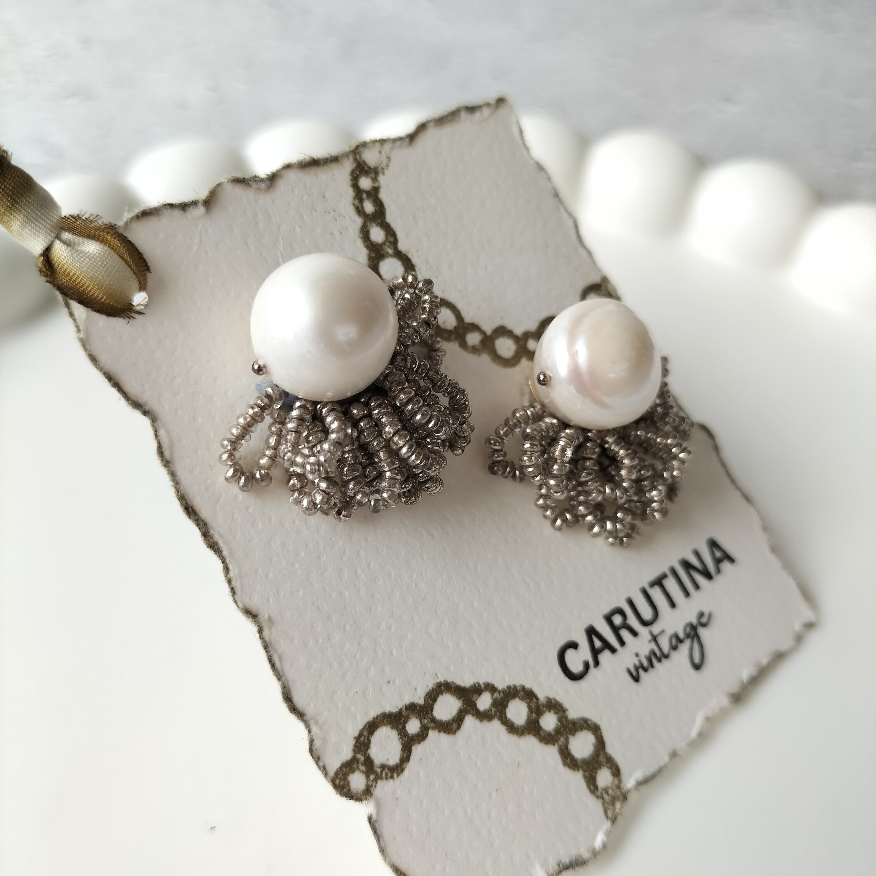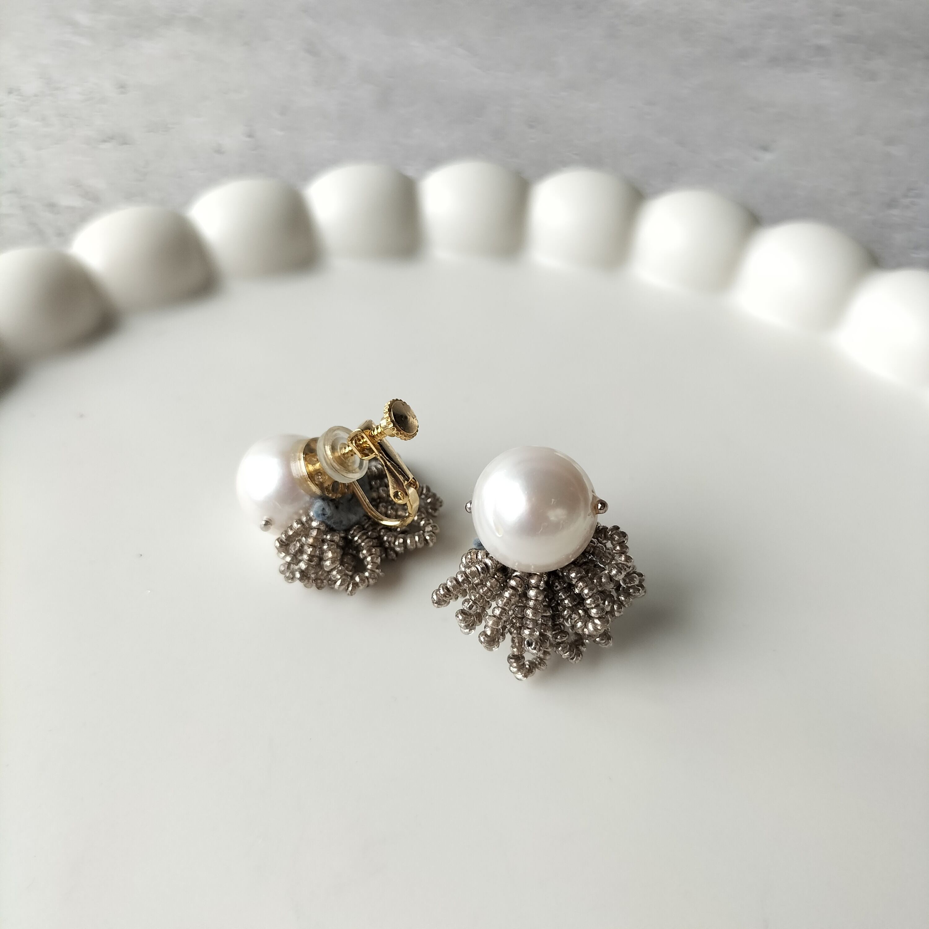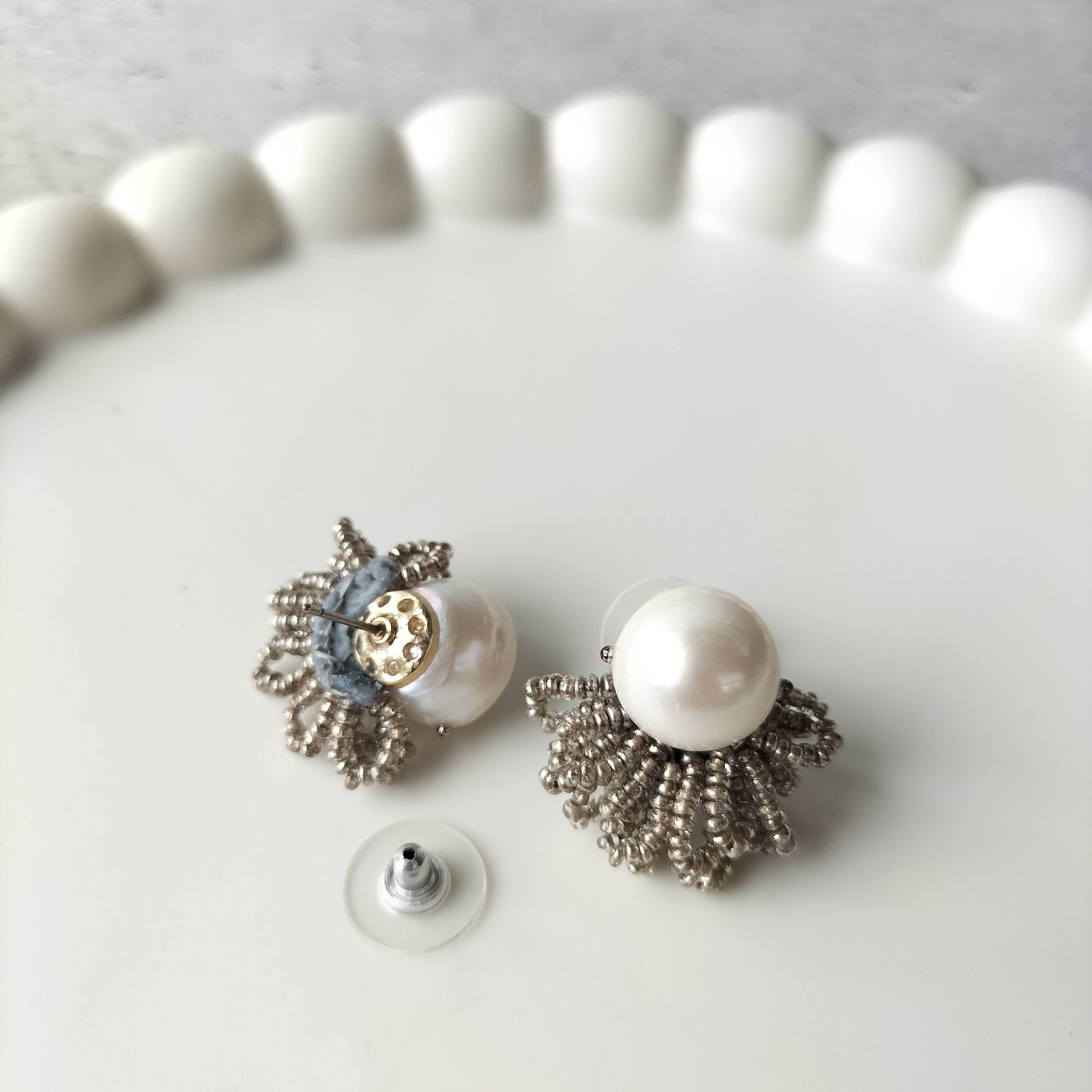 大粒 淡水パール アンティークビーズ イヤリング ピアス 1点物 数量限定 フランス買付け アレルギー対応 ギフト無料