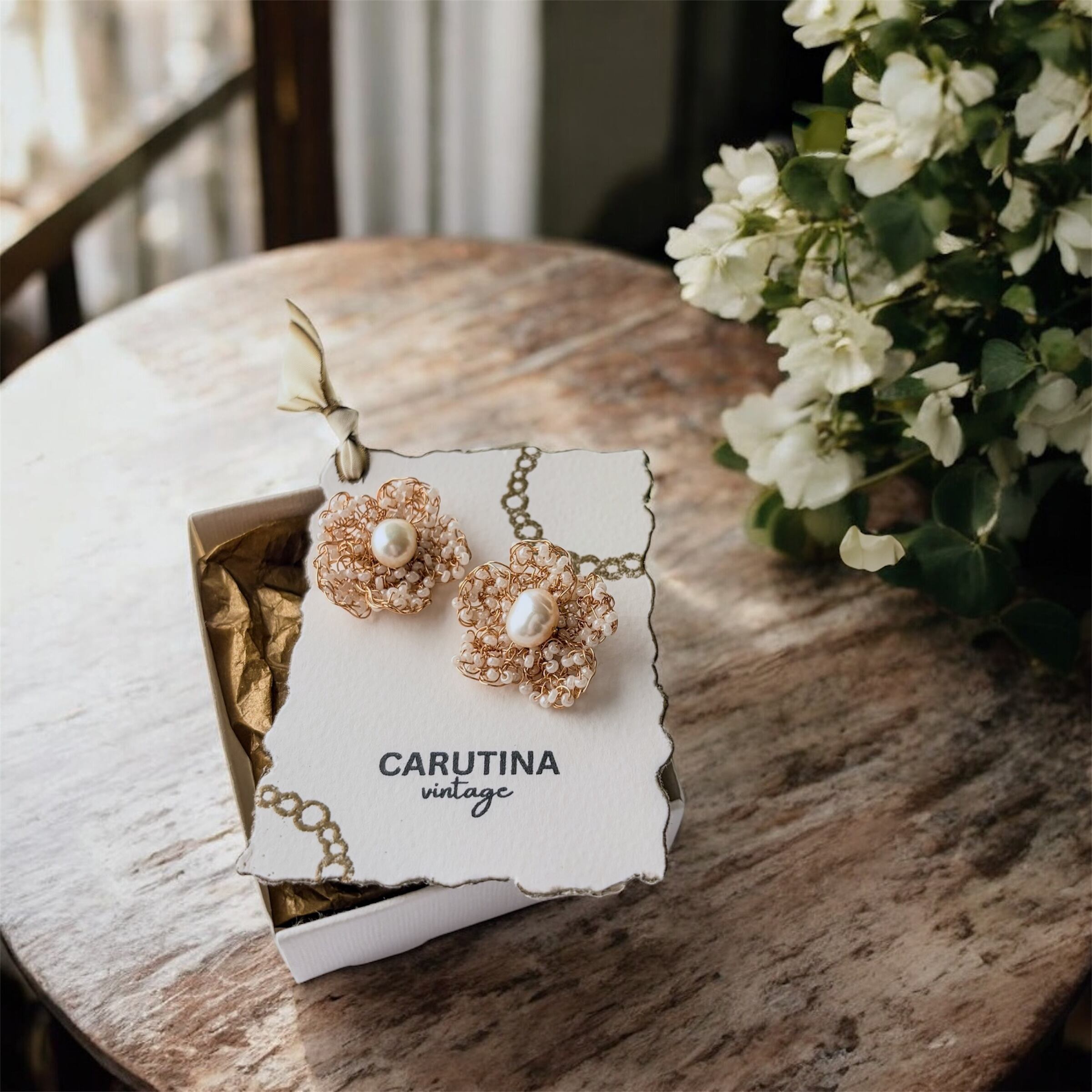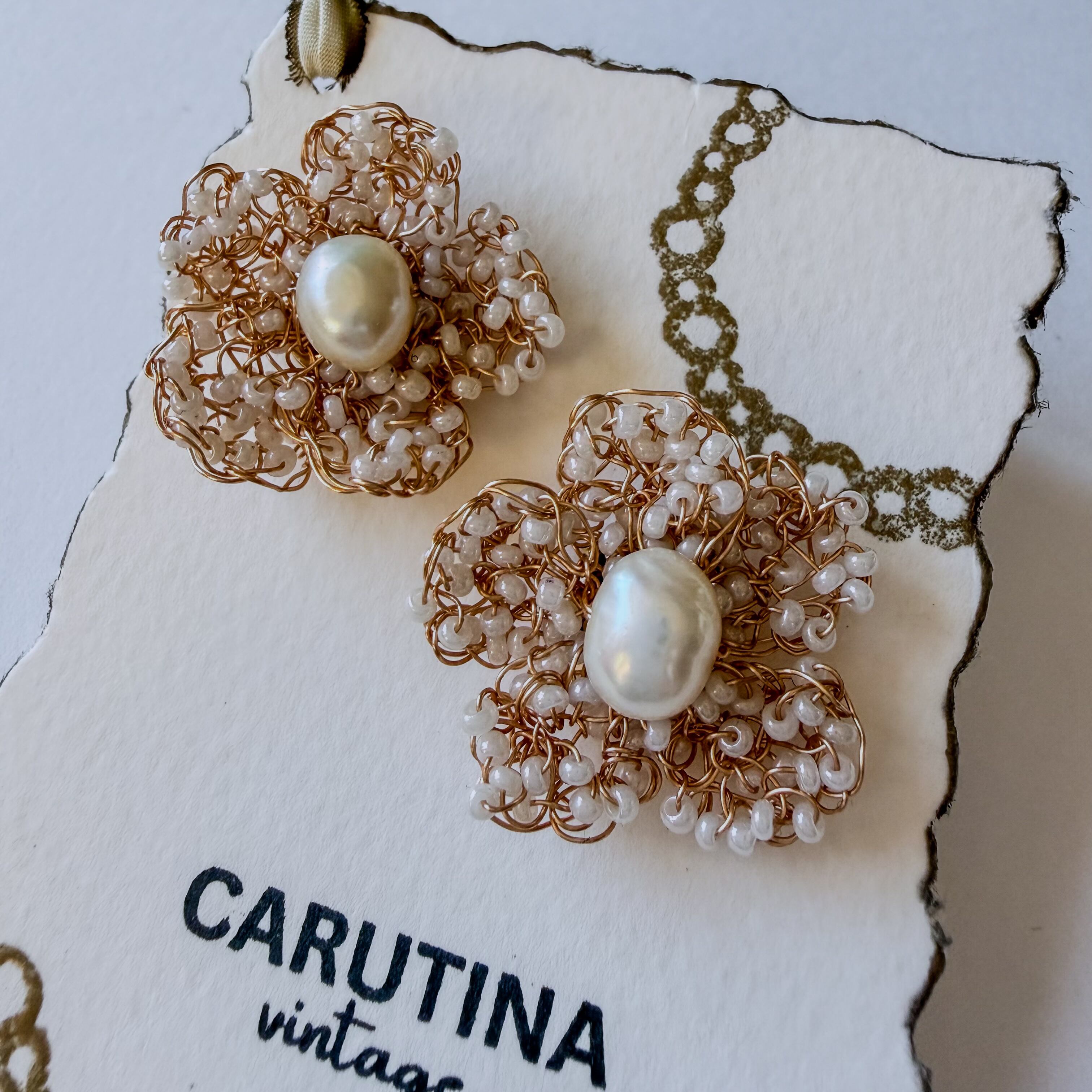 新作 極細ワイヤー編み 淡水パール×アンティークビーズ 小花 超軽量 イヤリング ピアス ノンホール アレルギー対応 ギフト無料 ギフトボックス付 送料無料 フォーマル パーティー ウエディング 結婚式