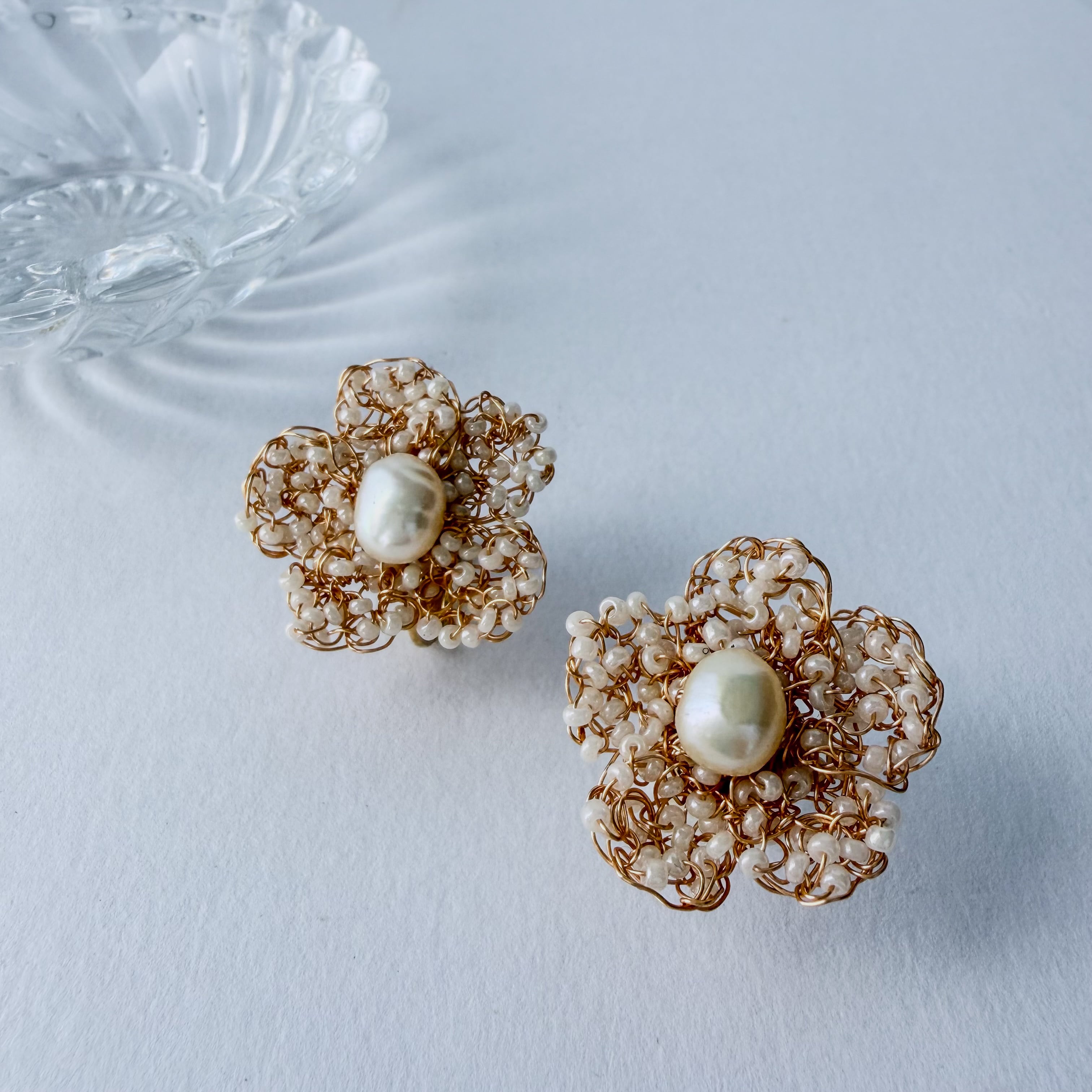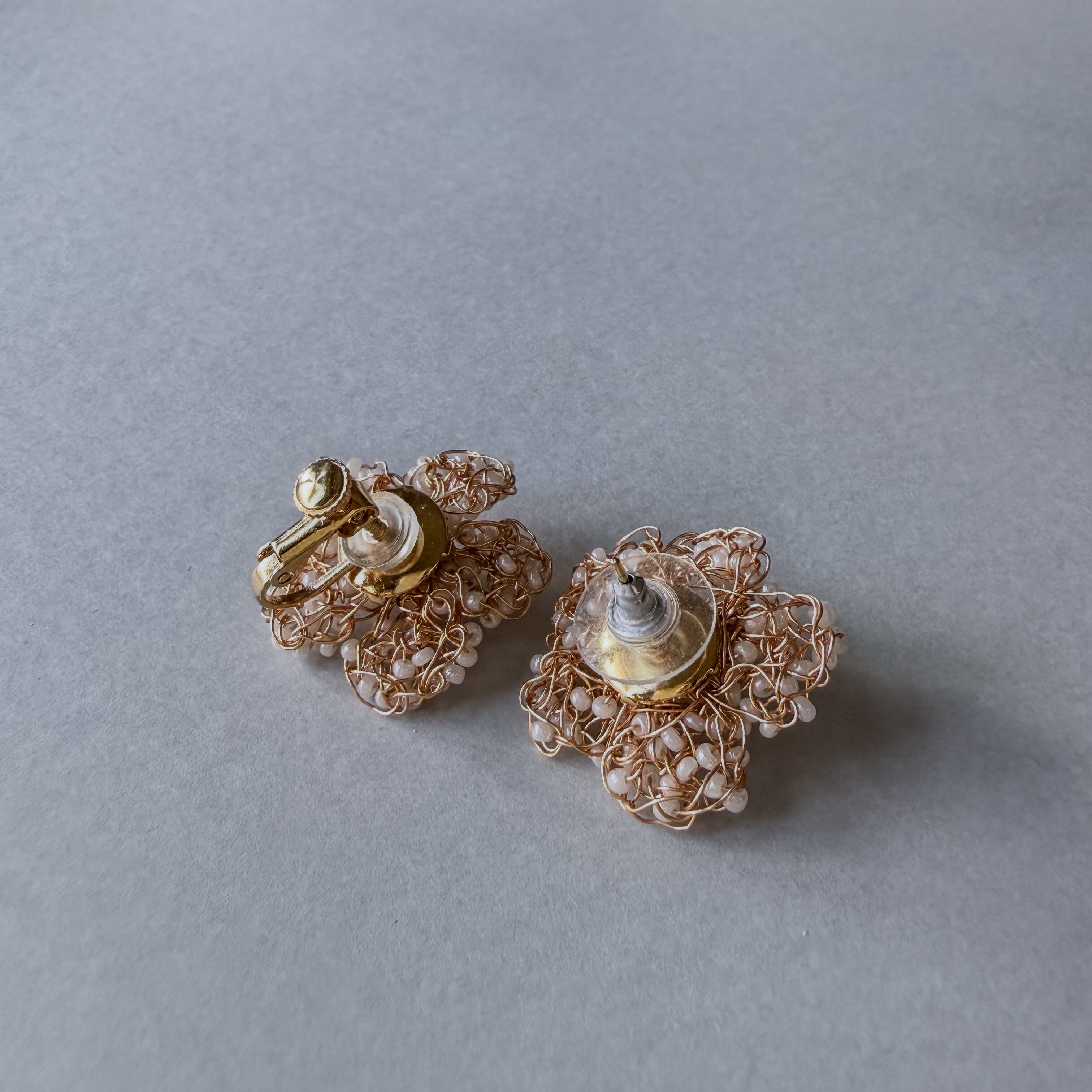 極細のワイヤーで一粒一粒、丁寧に編み込んだ