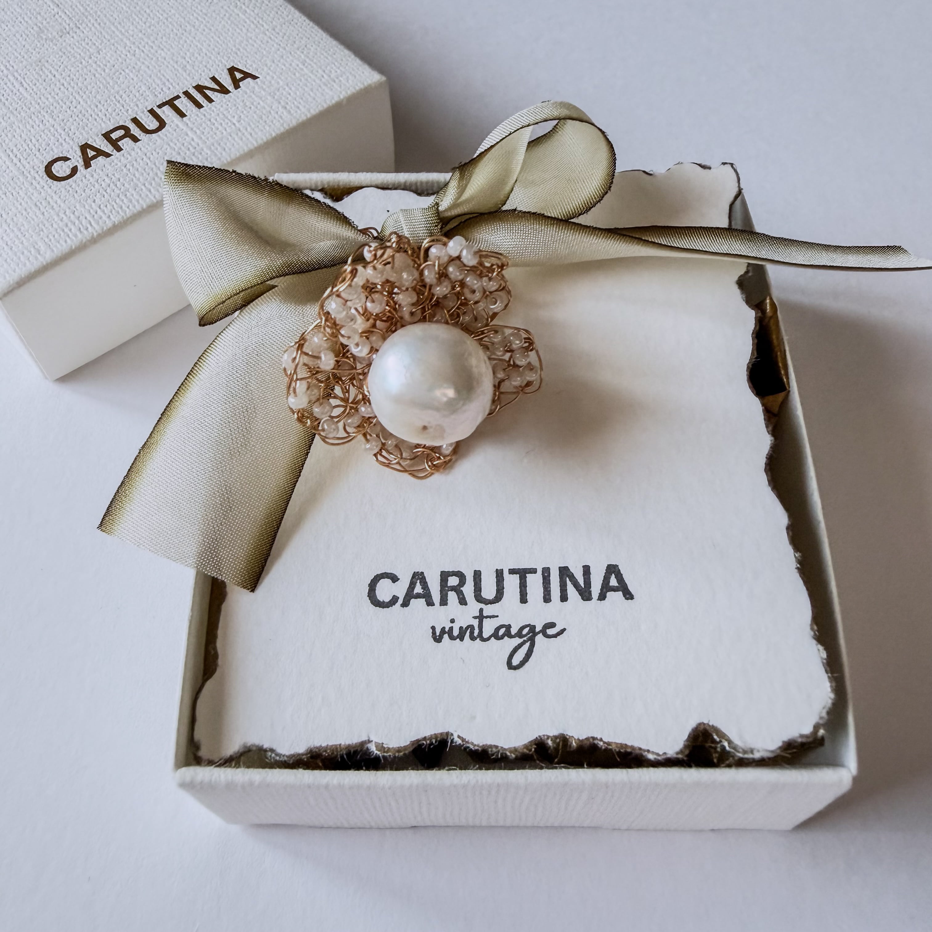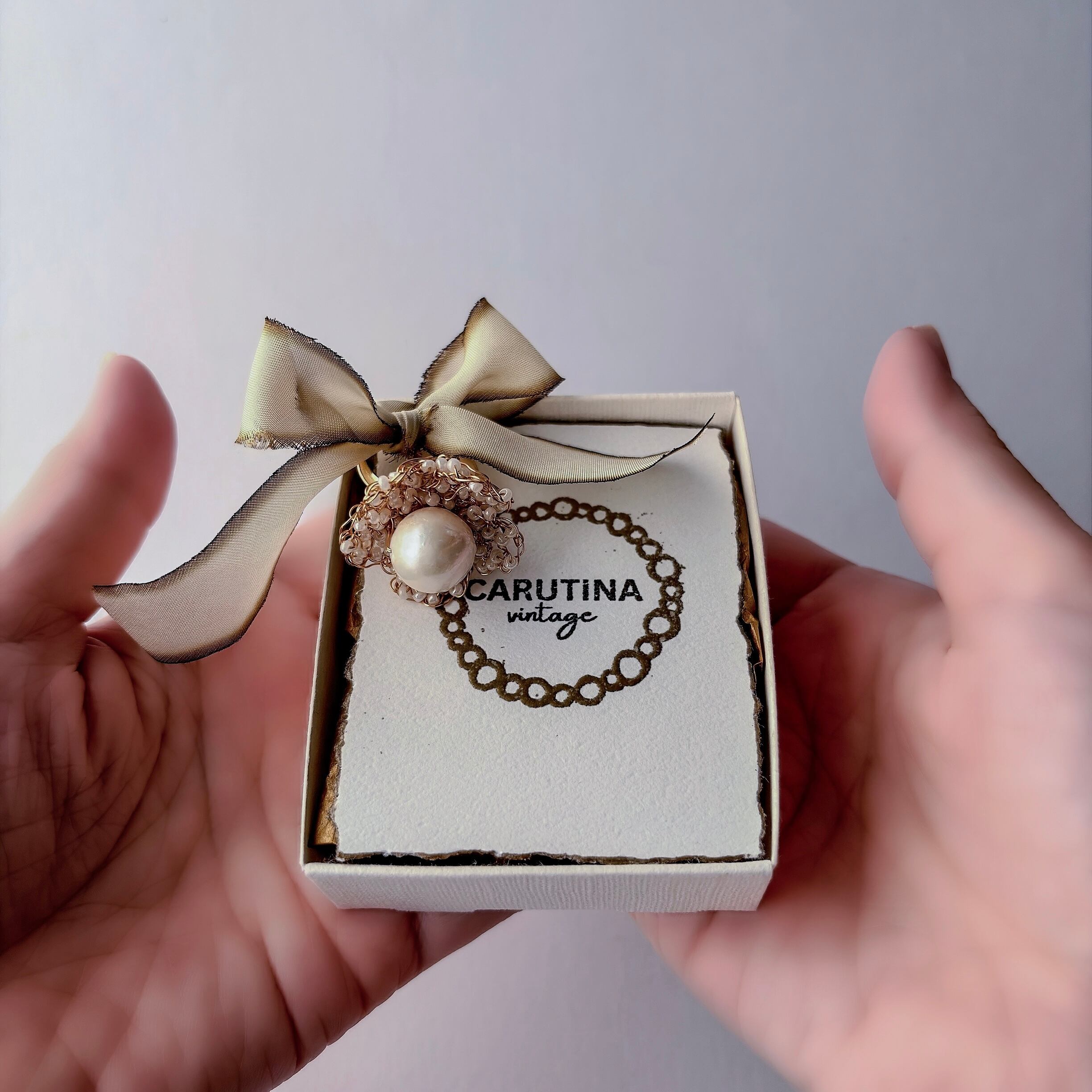 極細のワイヤーで一粒一粒、丁寧に編み込んだリングです。
