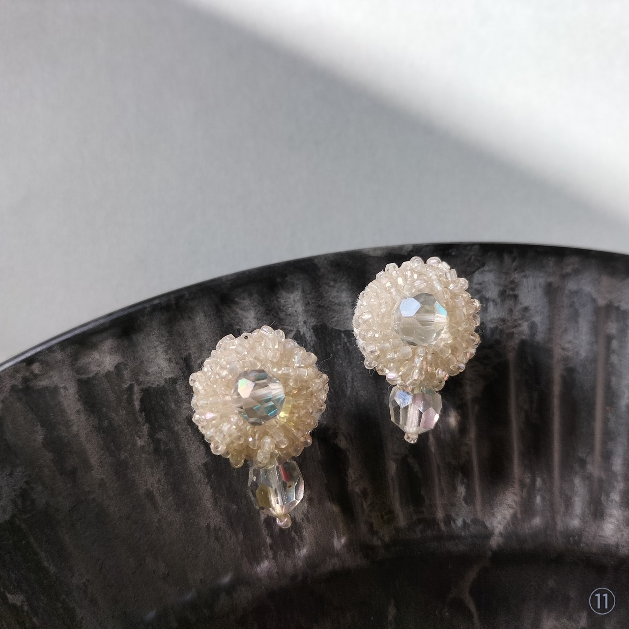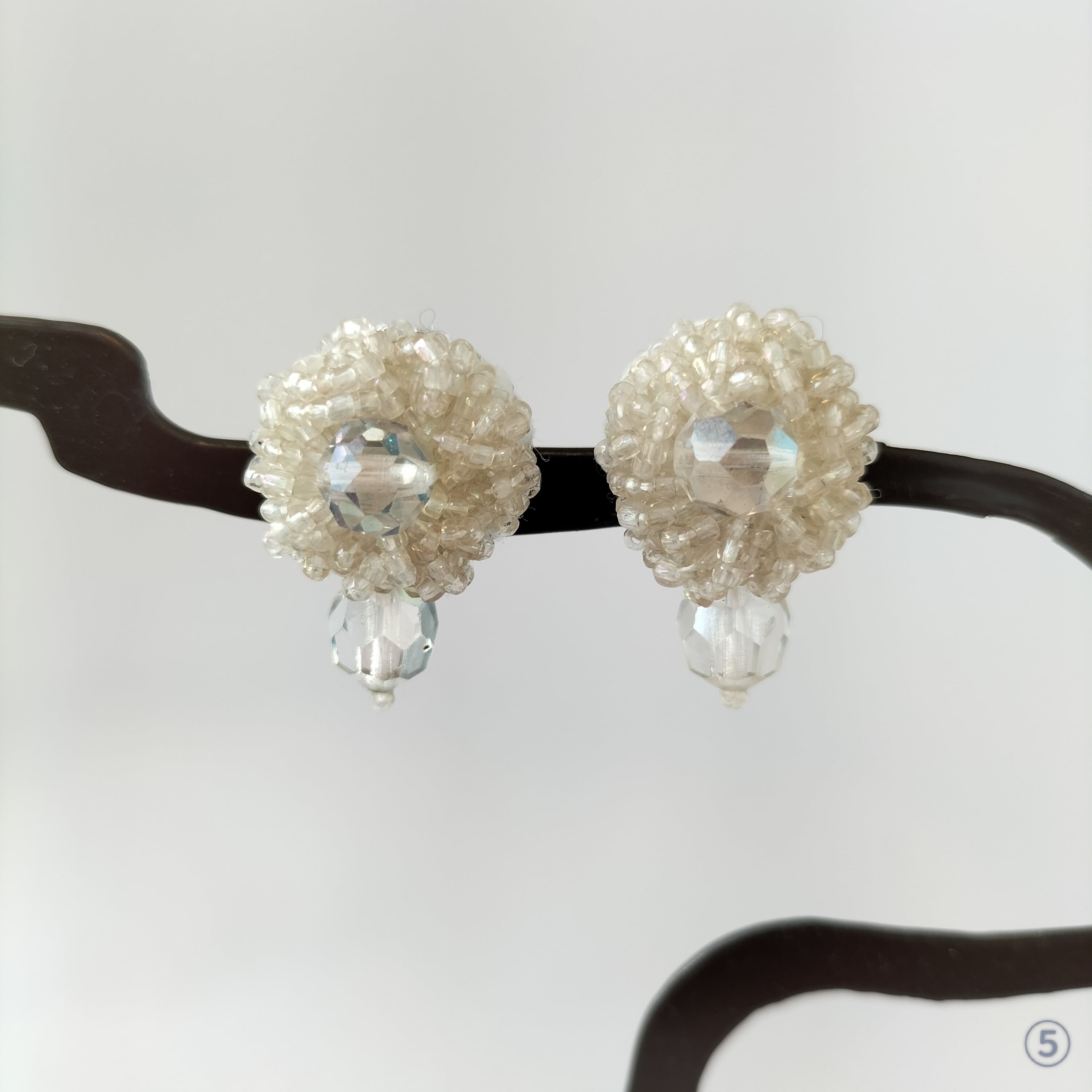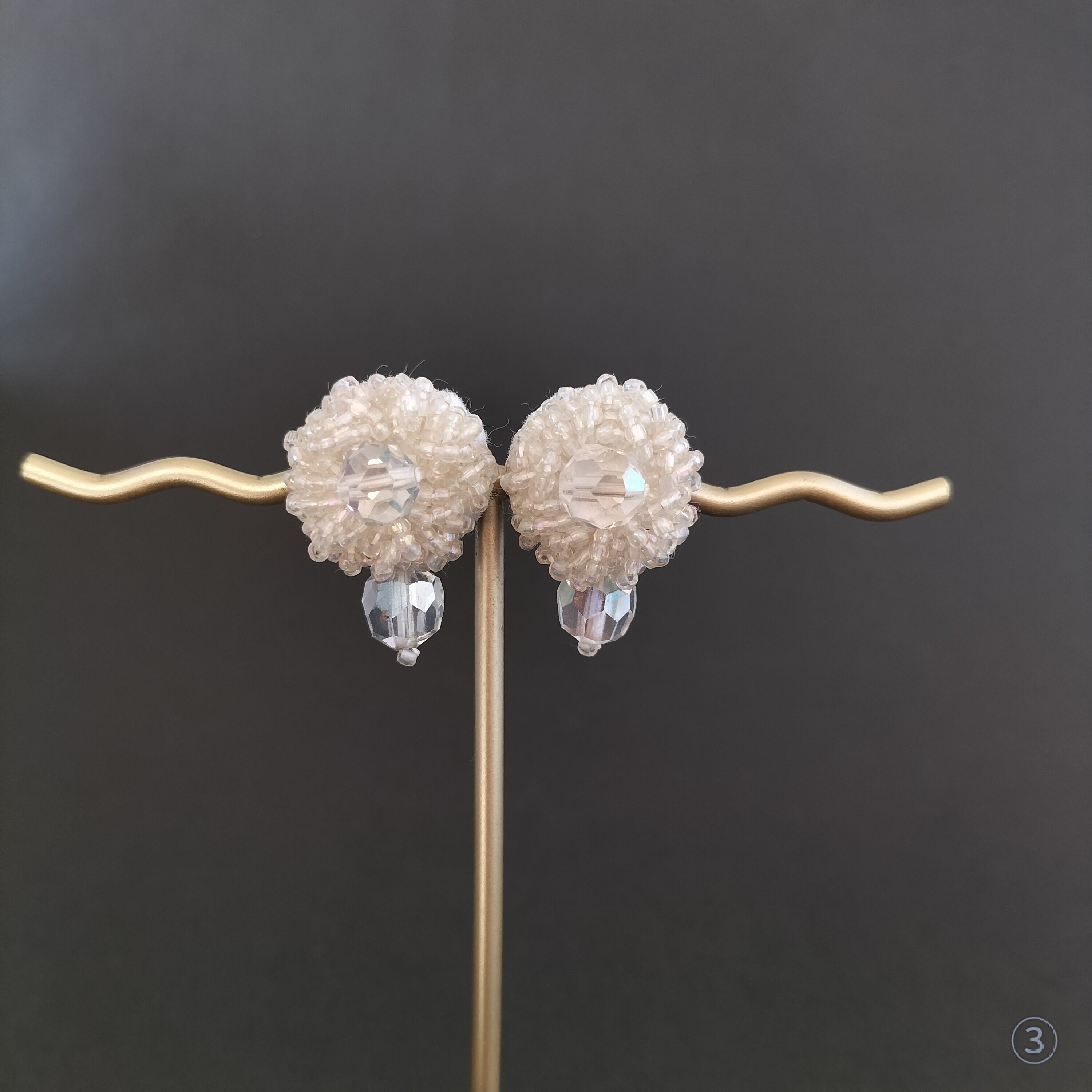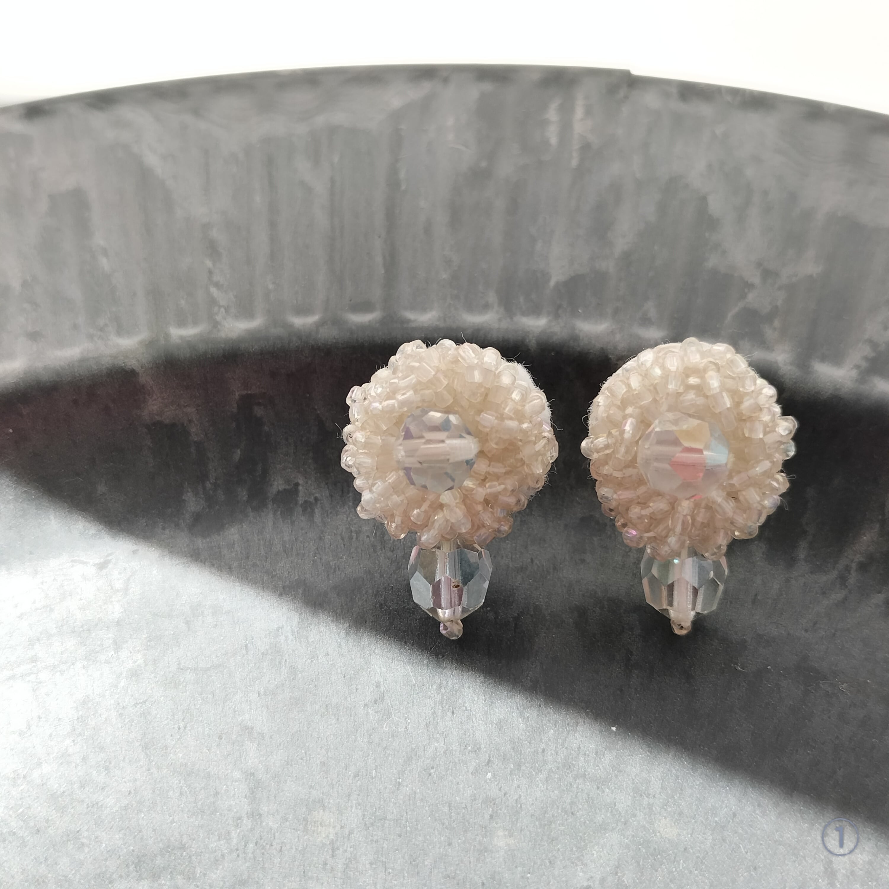 【フランス蚤の市で出会った♡】まぁるいフォルムが品よく可愛い♡アンティークビーズと希少なアンティーククリスタル 痛くないイヤリング/ピアス アレルギー対応 プレゼントにもおすすめ ギフトボックス無料☆