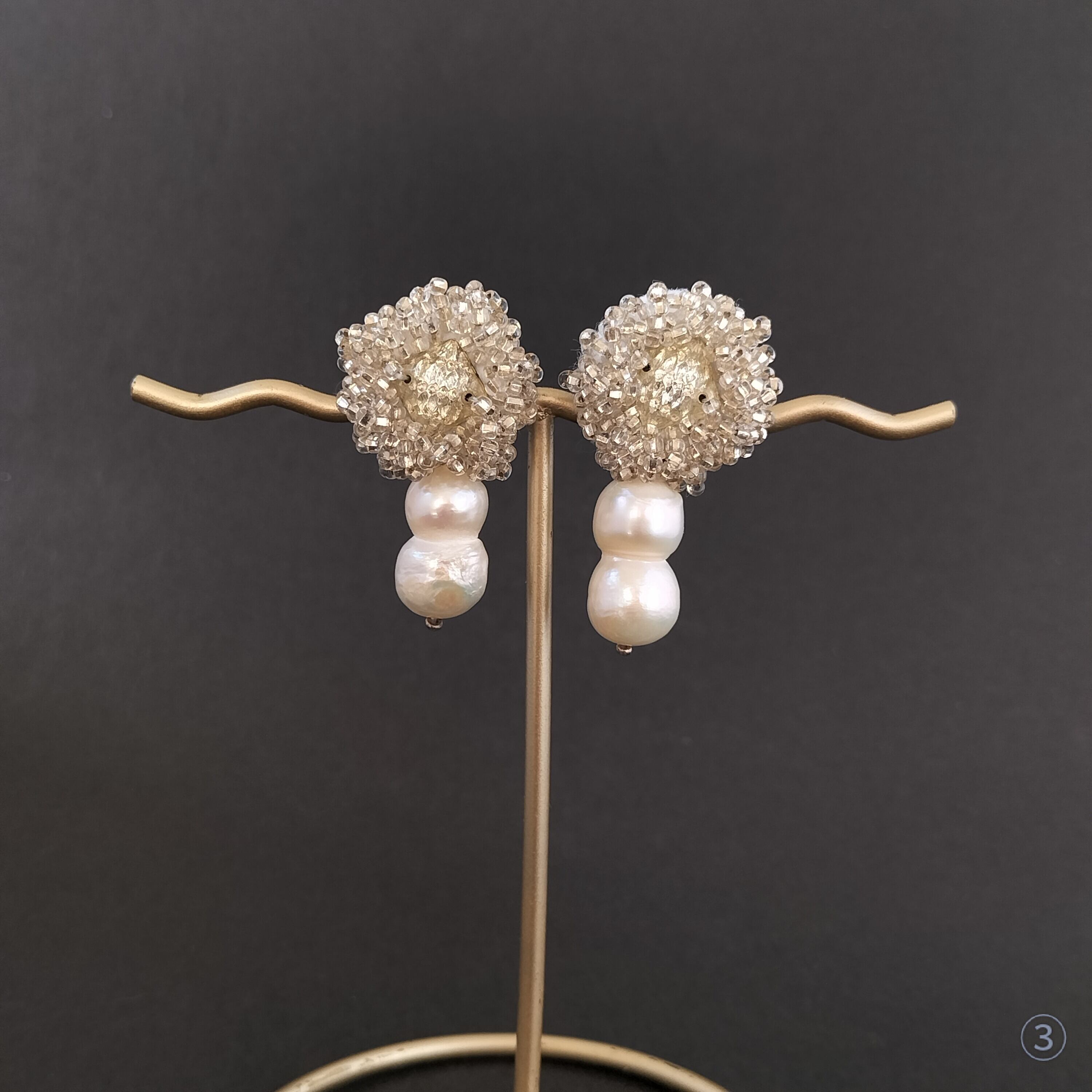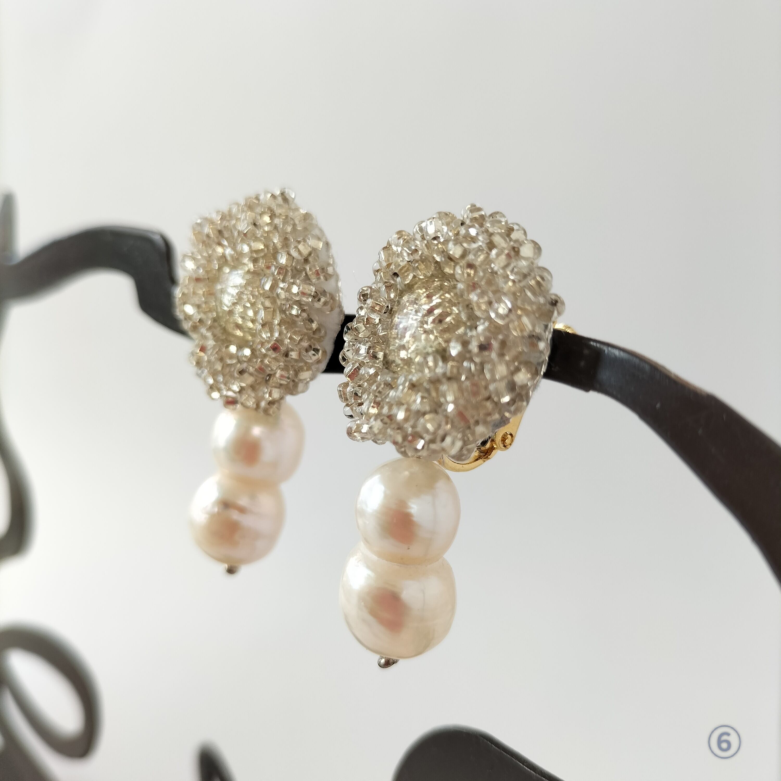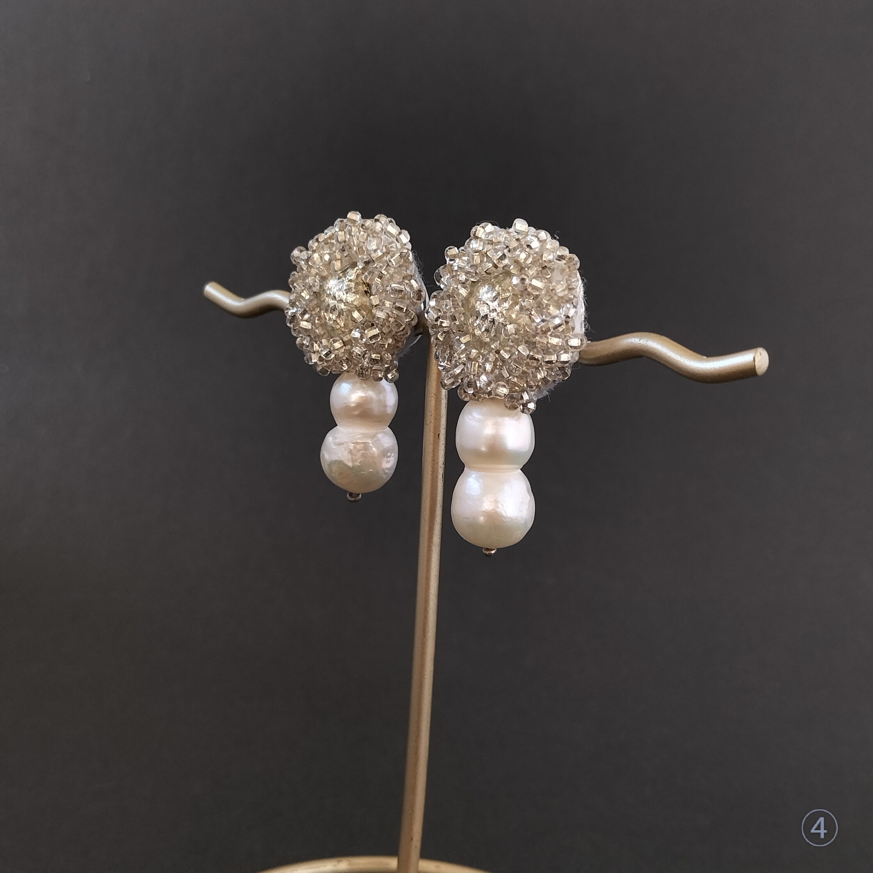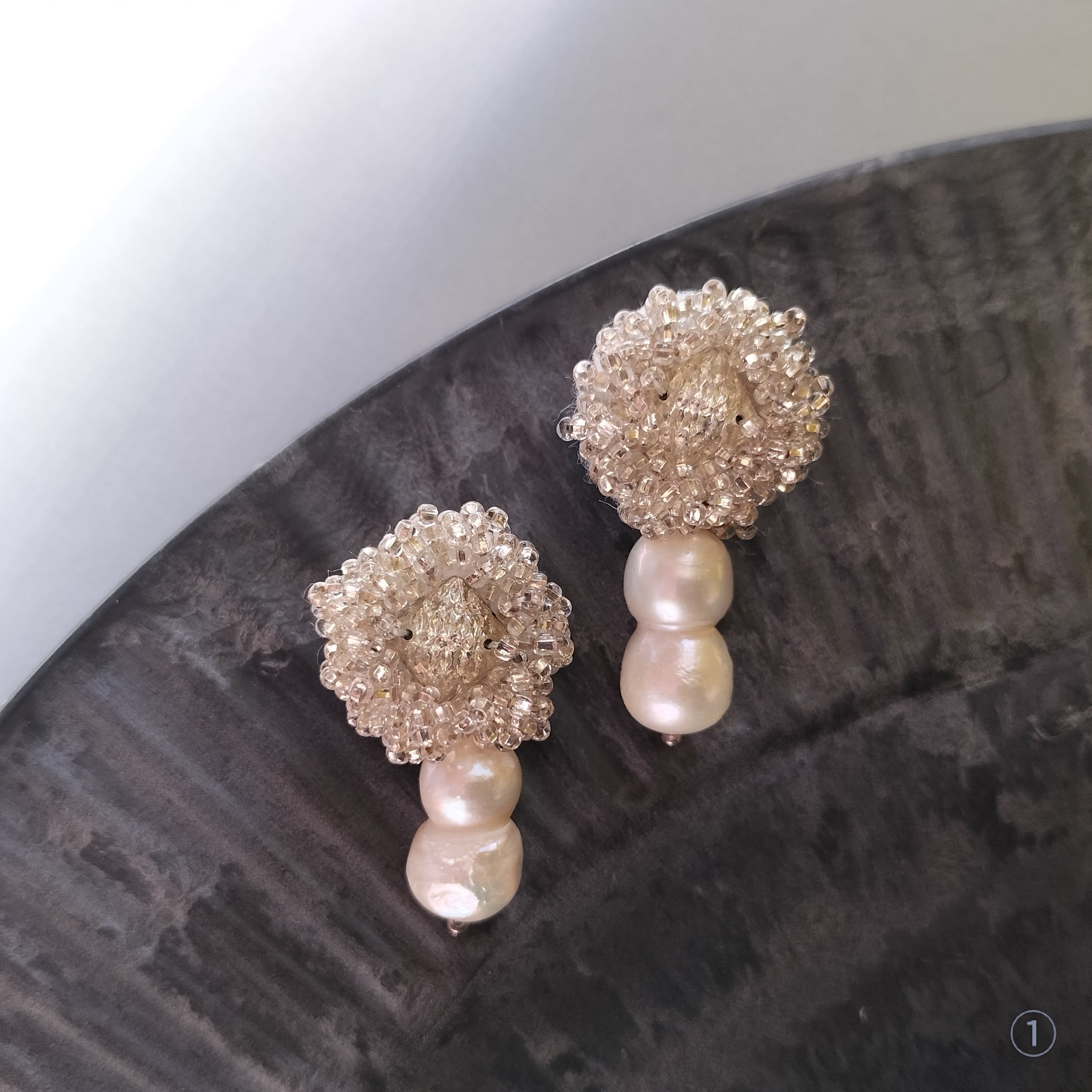透明感のあるシルバービーズを際立たせるボタンパーツの
