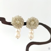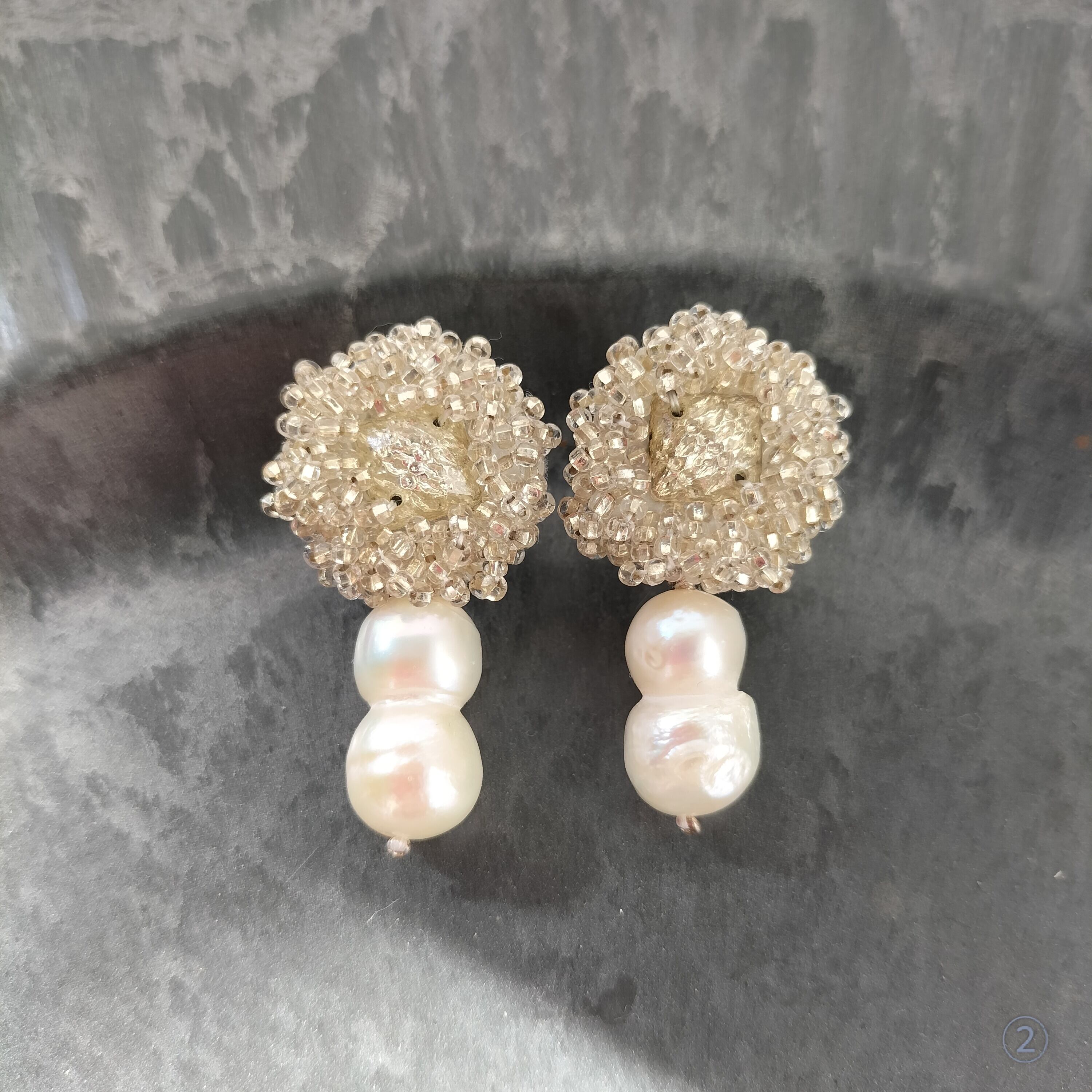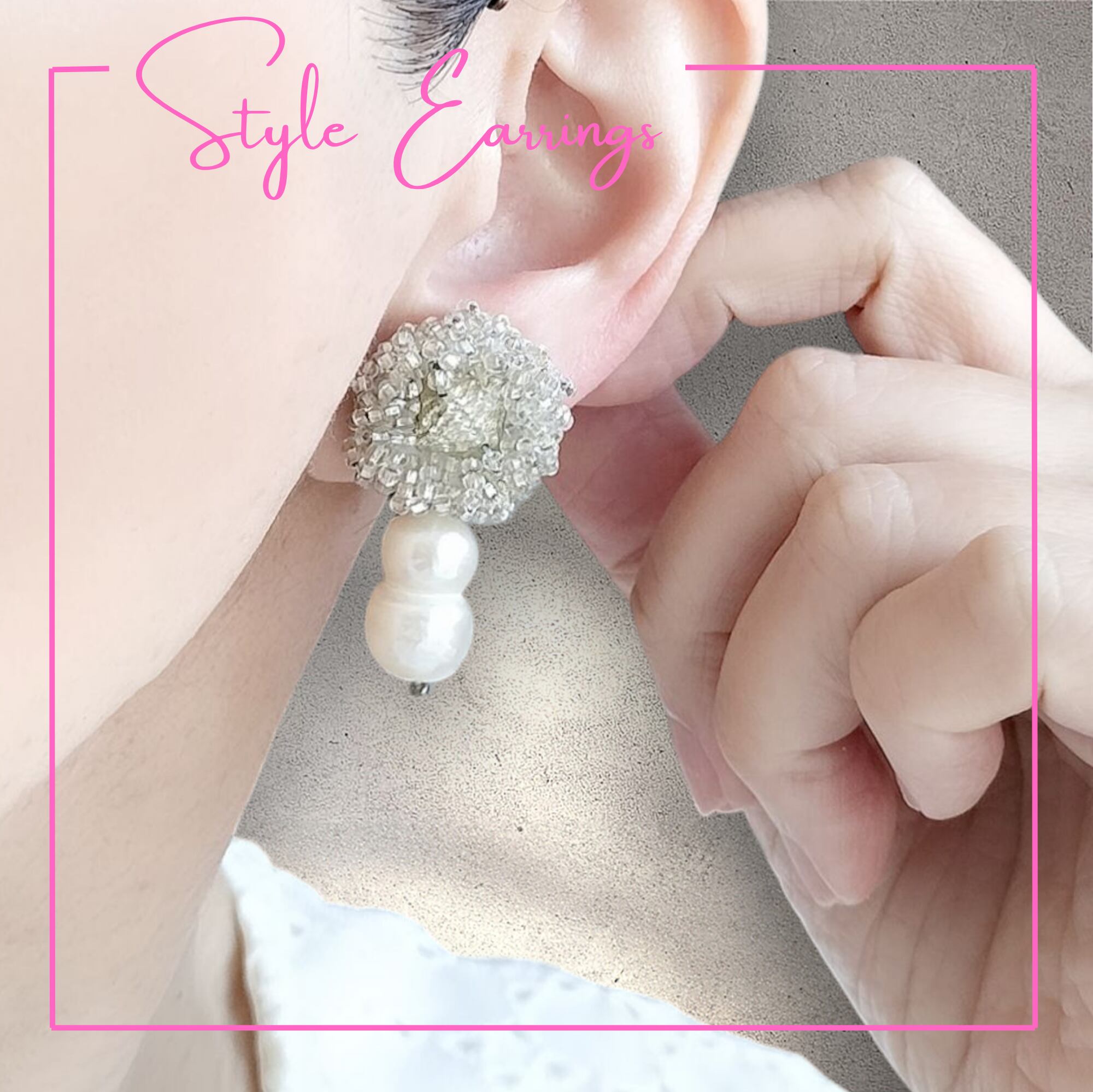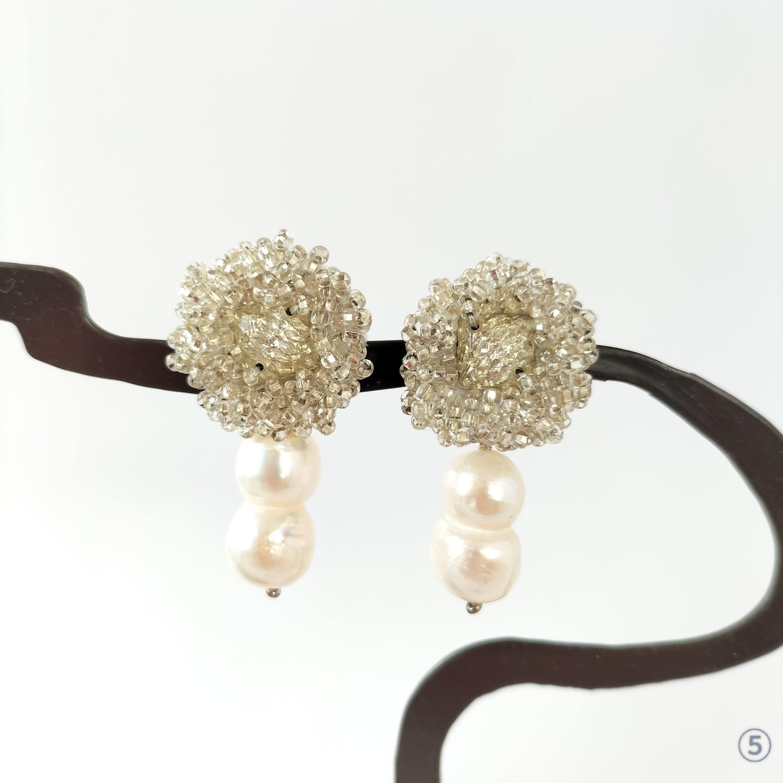 透明感のあるシルバービーズを際立たせるボタンパーツの