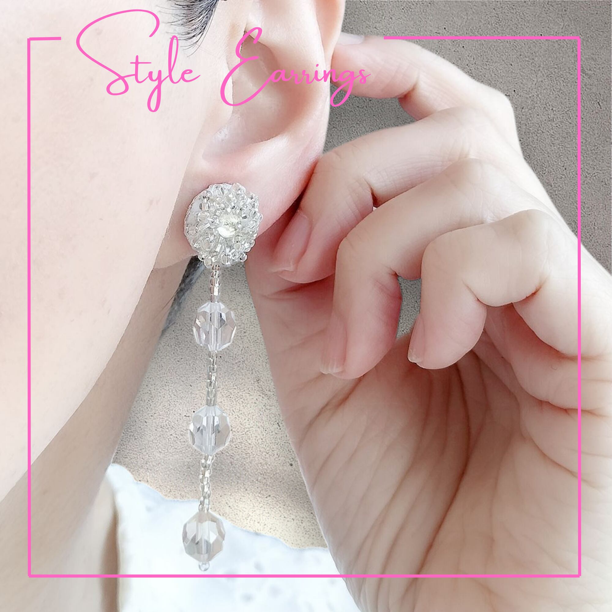 透明感のあるシルバービーズにはポイントとなる華奢なクリスタルパーツ