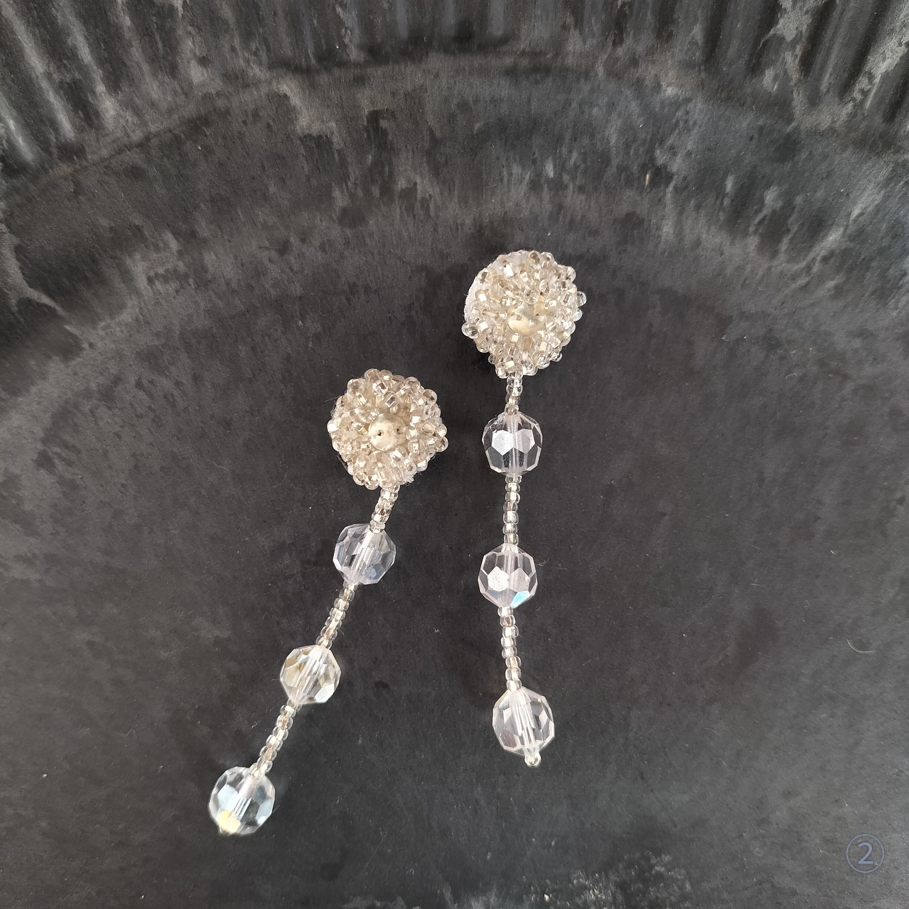 【フランス蚤の市で出会った♡】年代物ビーズの深い色合いアンティークビーズと希少なアンティーククリスタル 痛くないイヤリング/ピアス 揺れる大人可愛い♡アレルギー対応 プレゼントにもおすすめ ギフトボックス無料☆