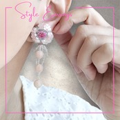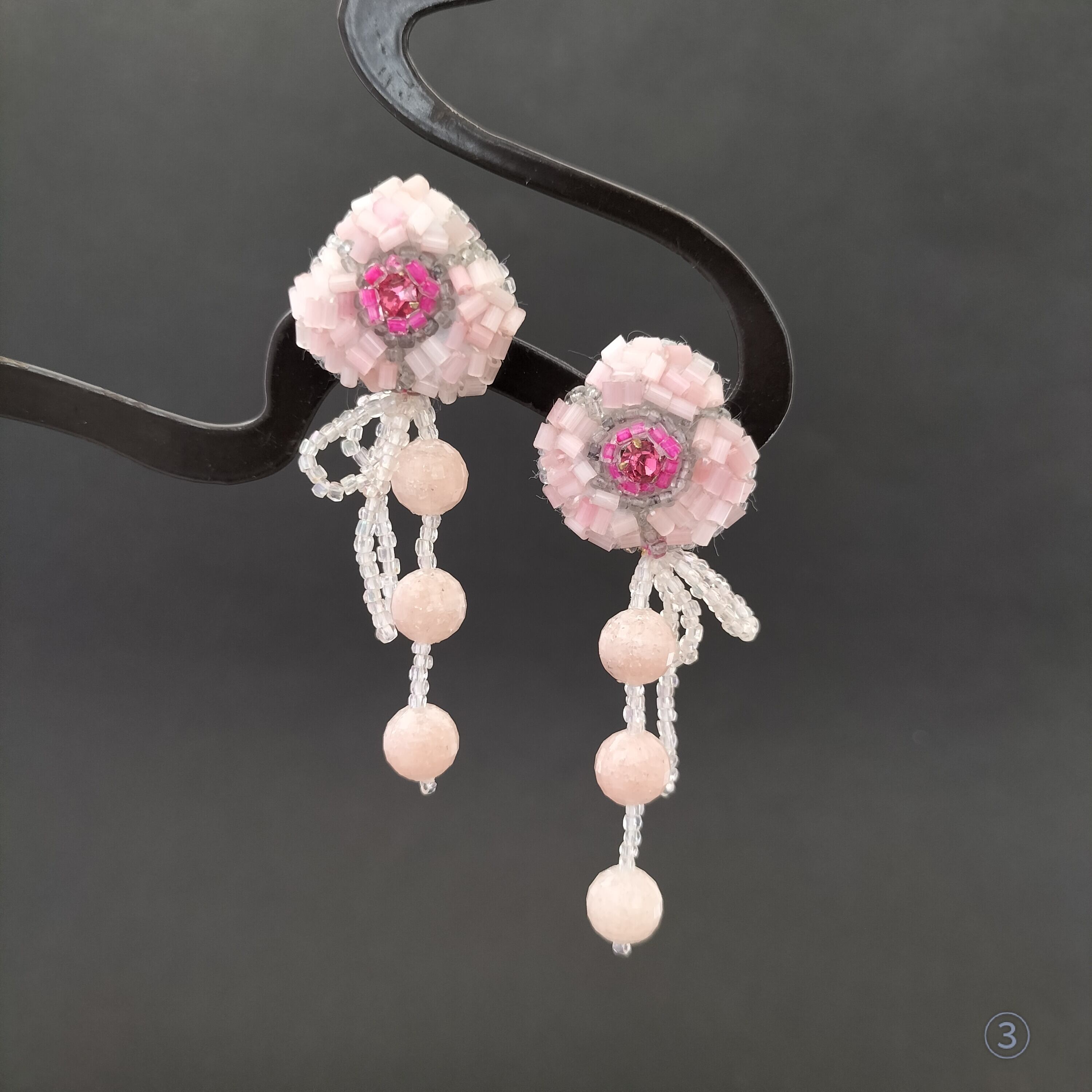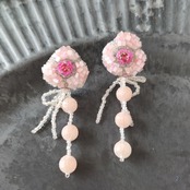 淡いピンクのビーズとポイントの煌めく華奢なラインストーン☆