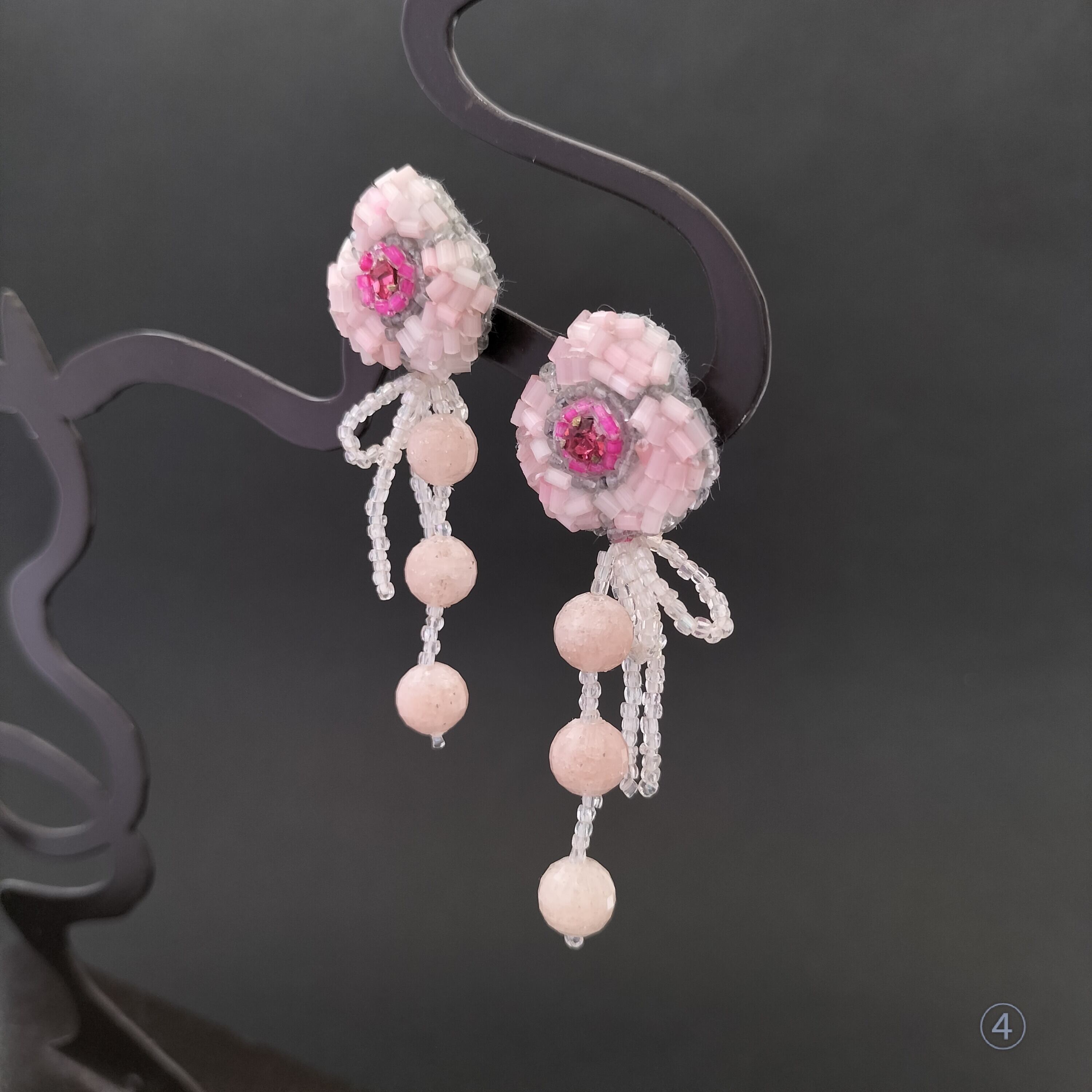 ピンクのパウダーのような揺れるドロップパーツ♡