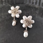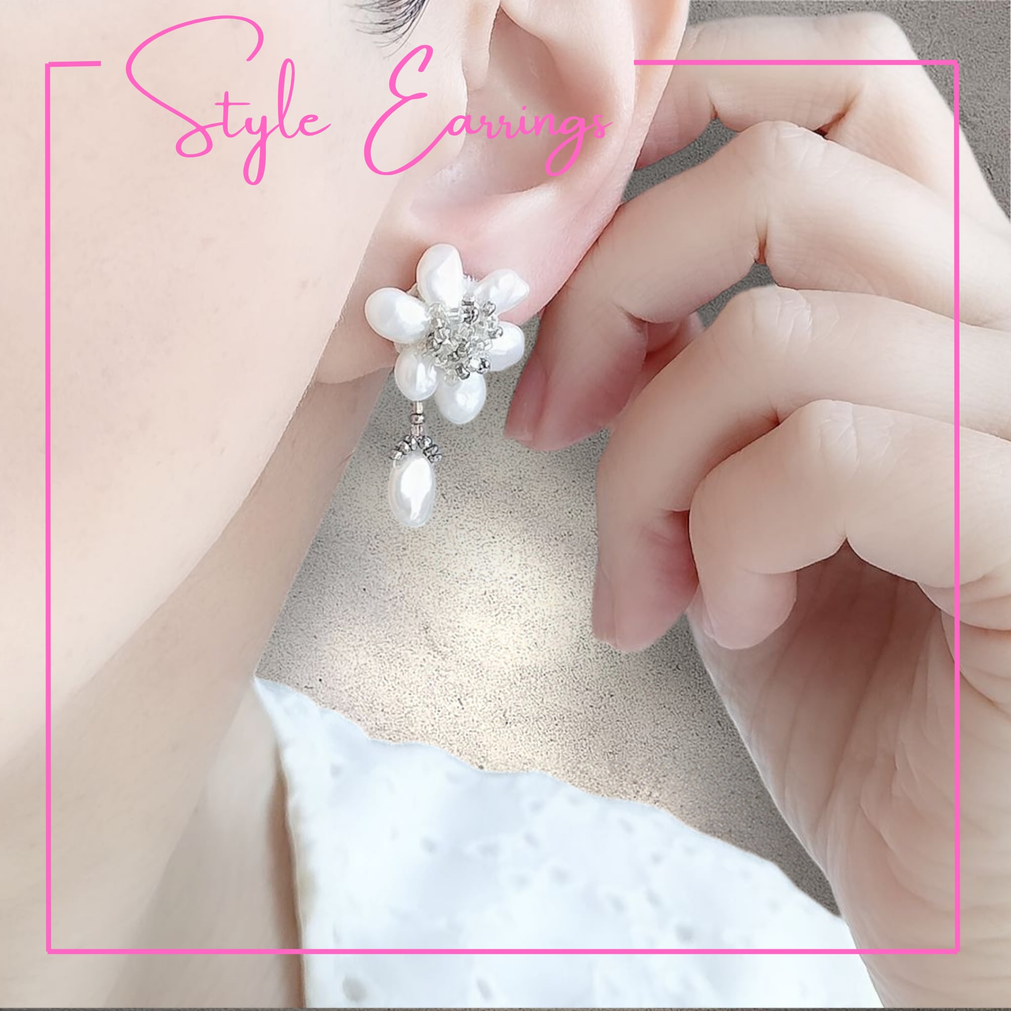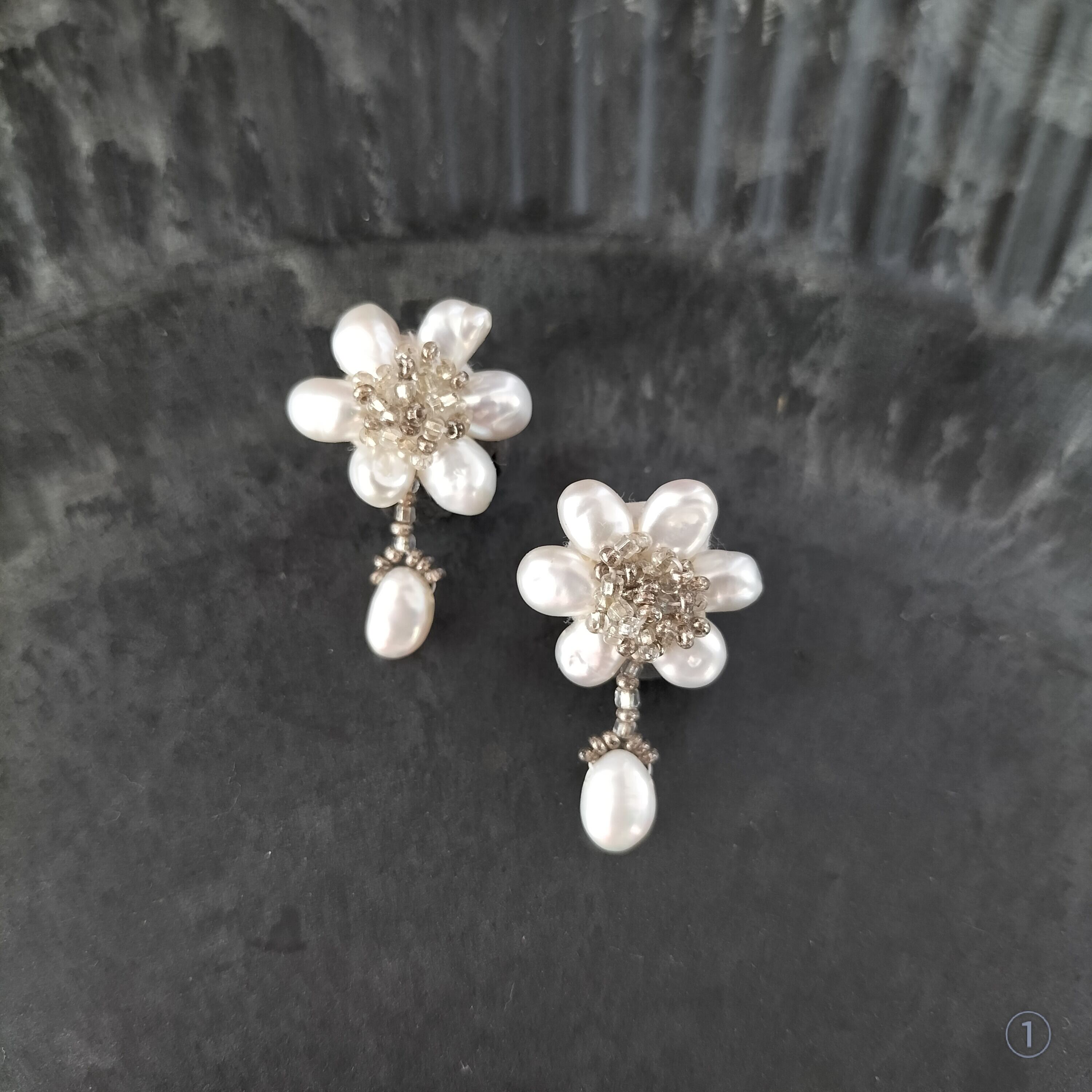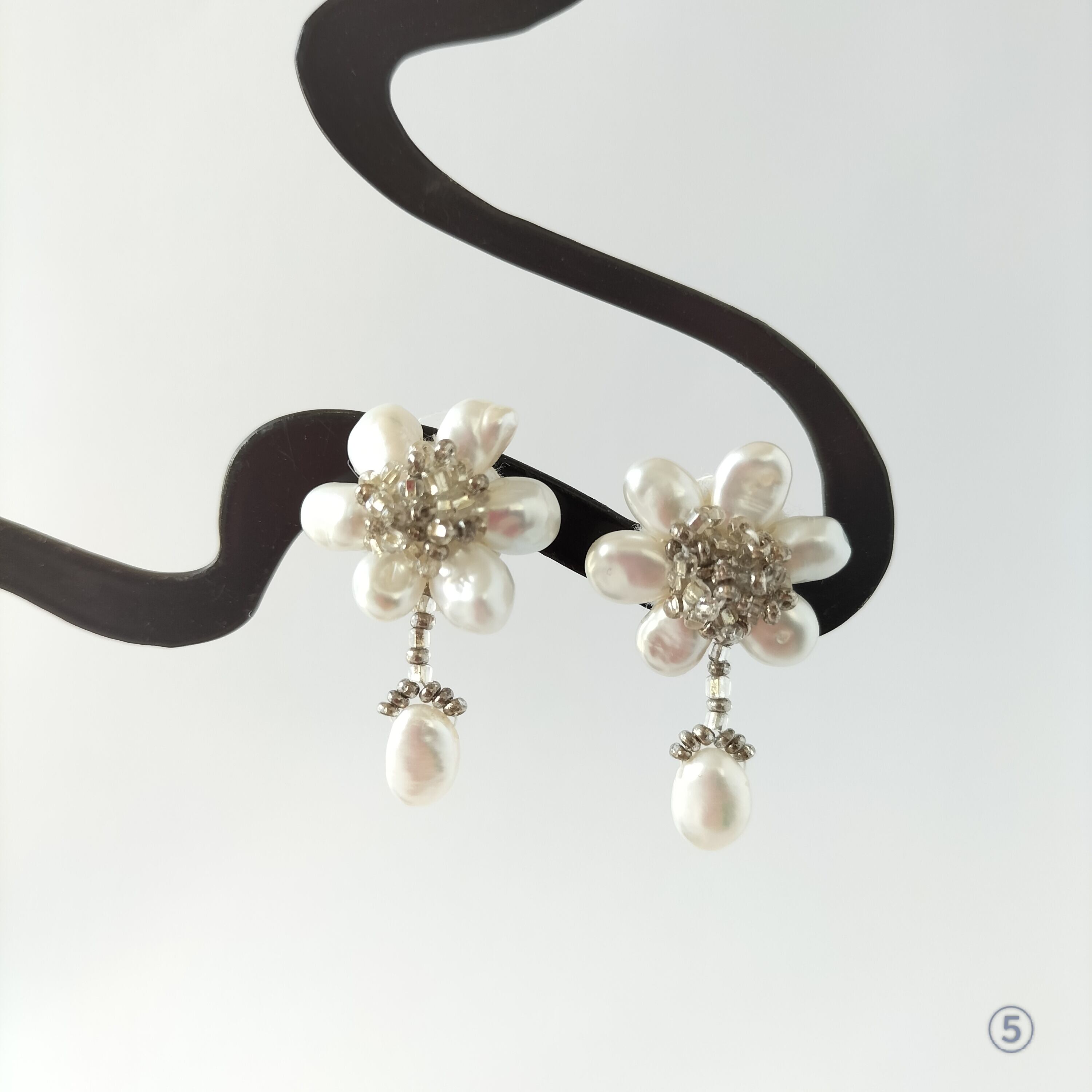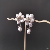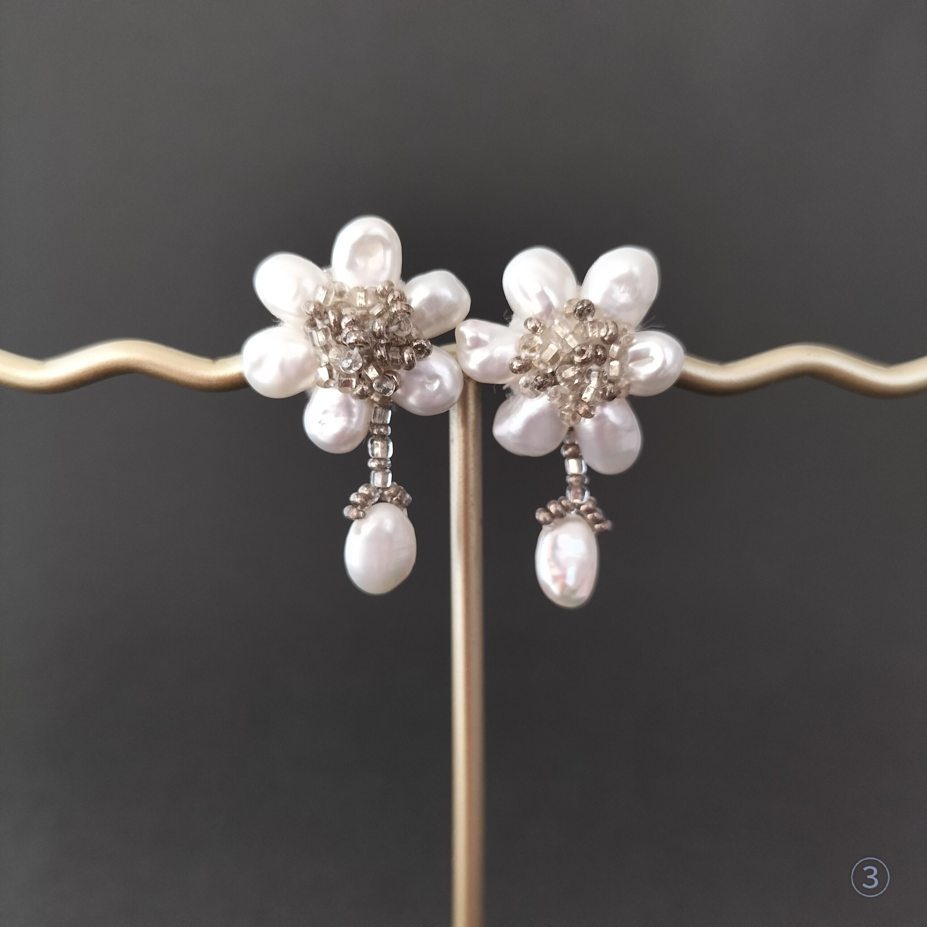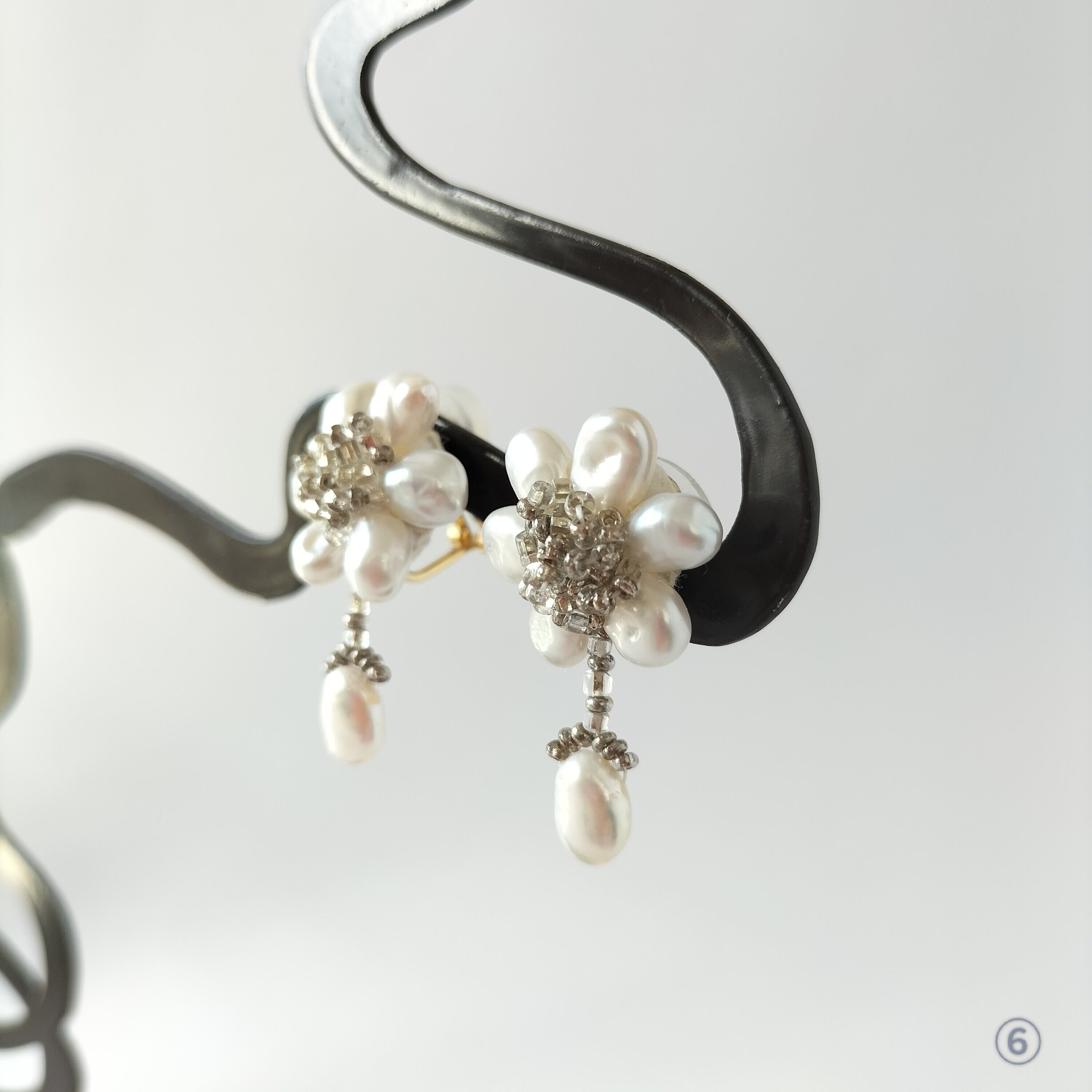 揺れる小花のような淡水パールと深みを纏ったシルバービーズは
