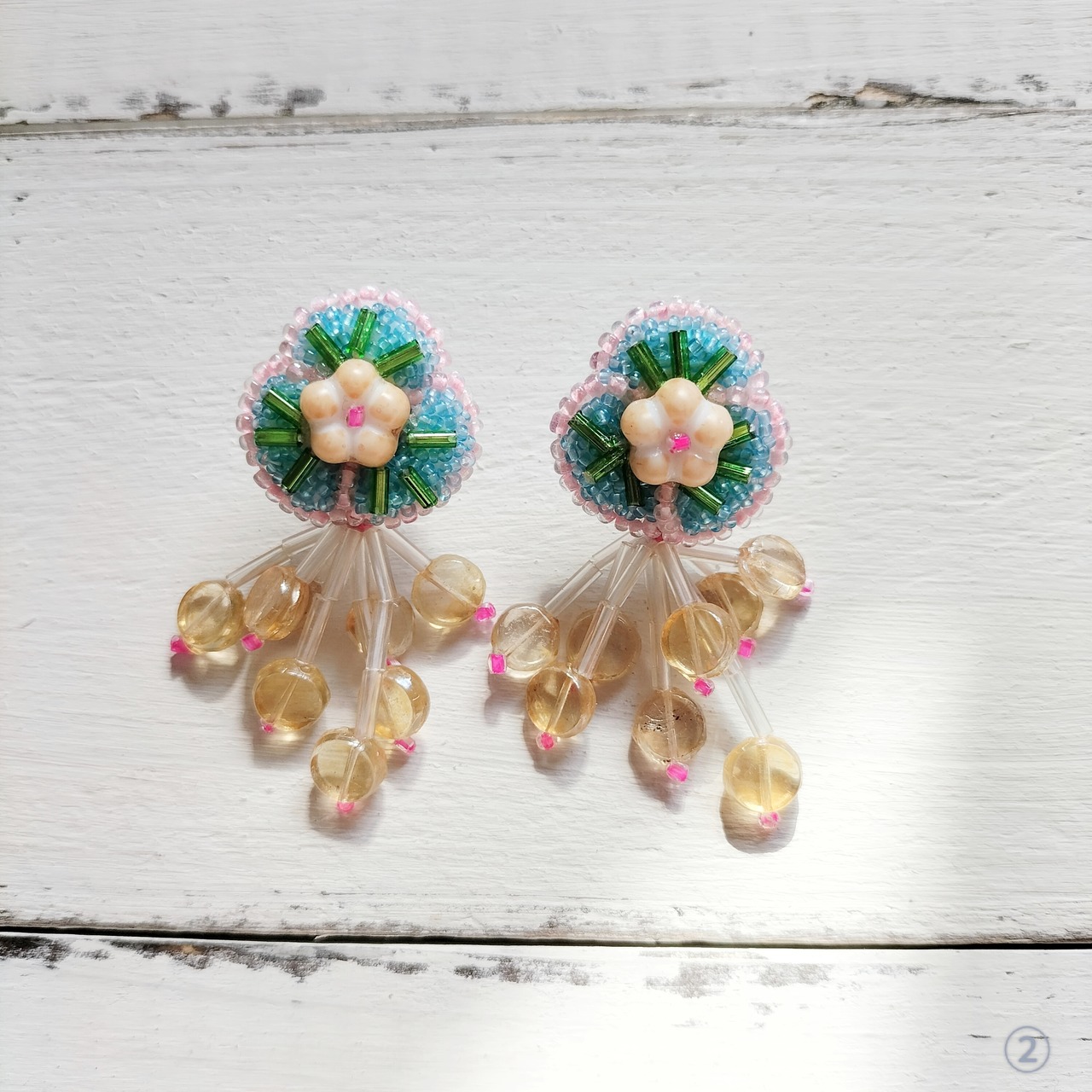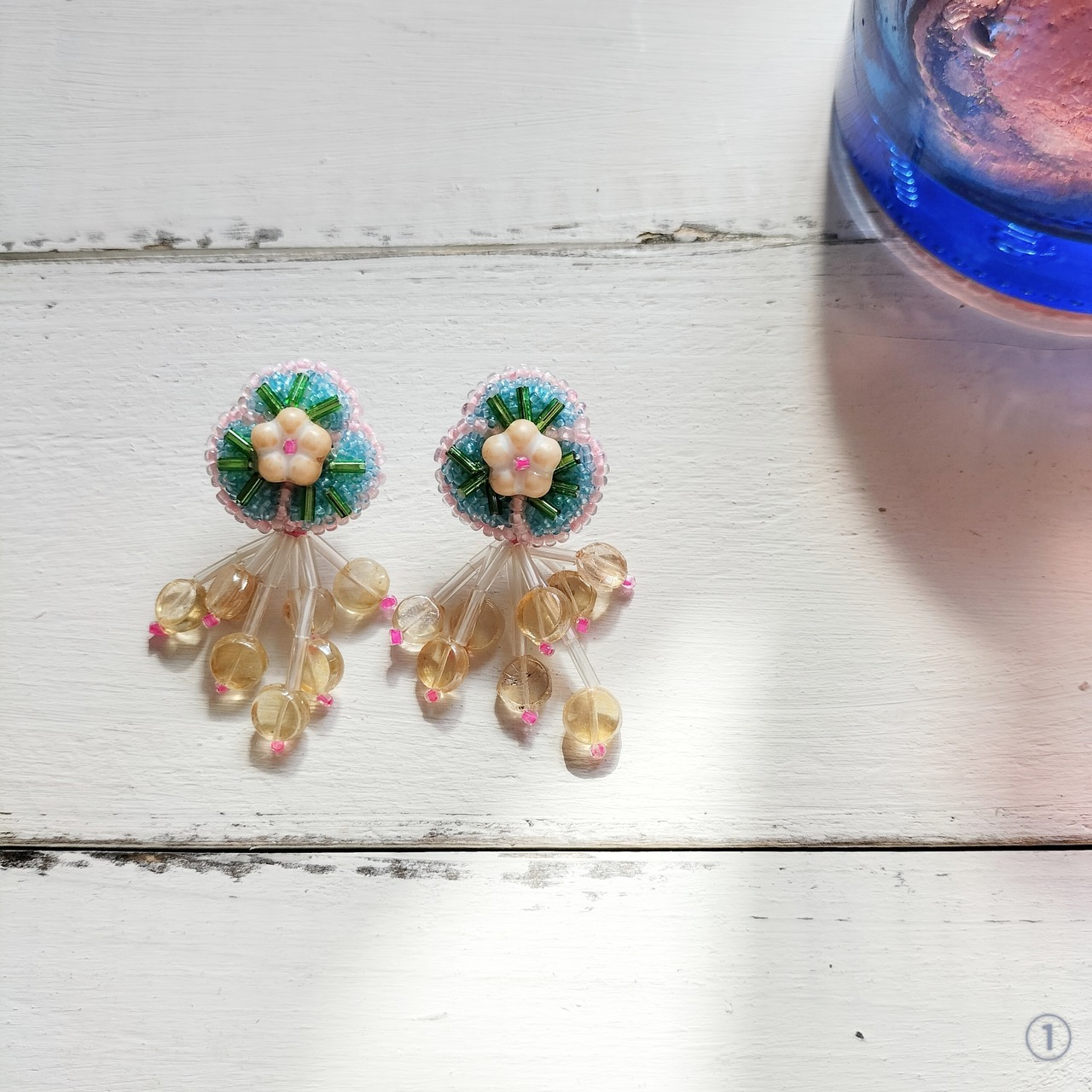 年代物ビーズの繊細な色合いや質感を活かして自然光で撮影しておりますが、