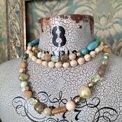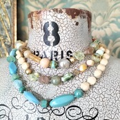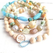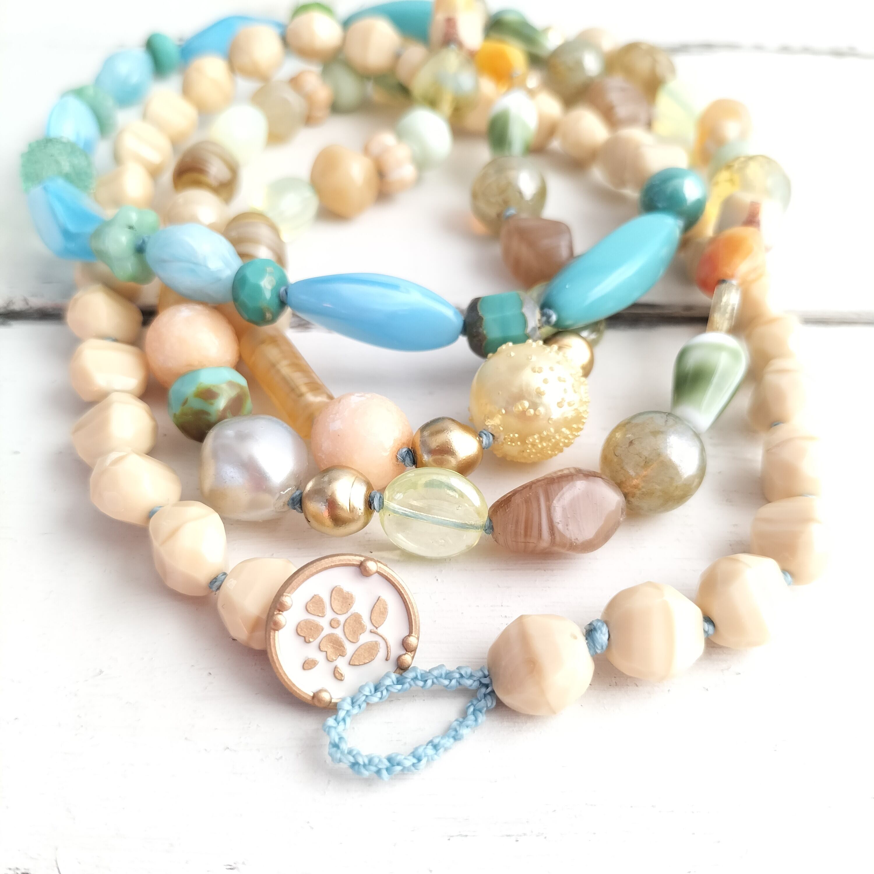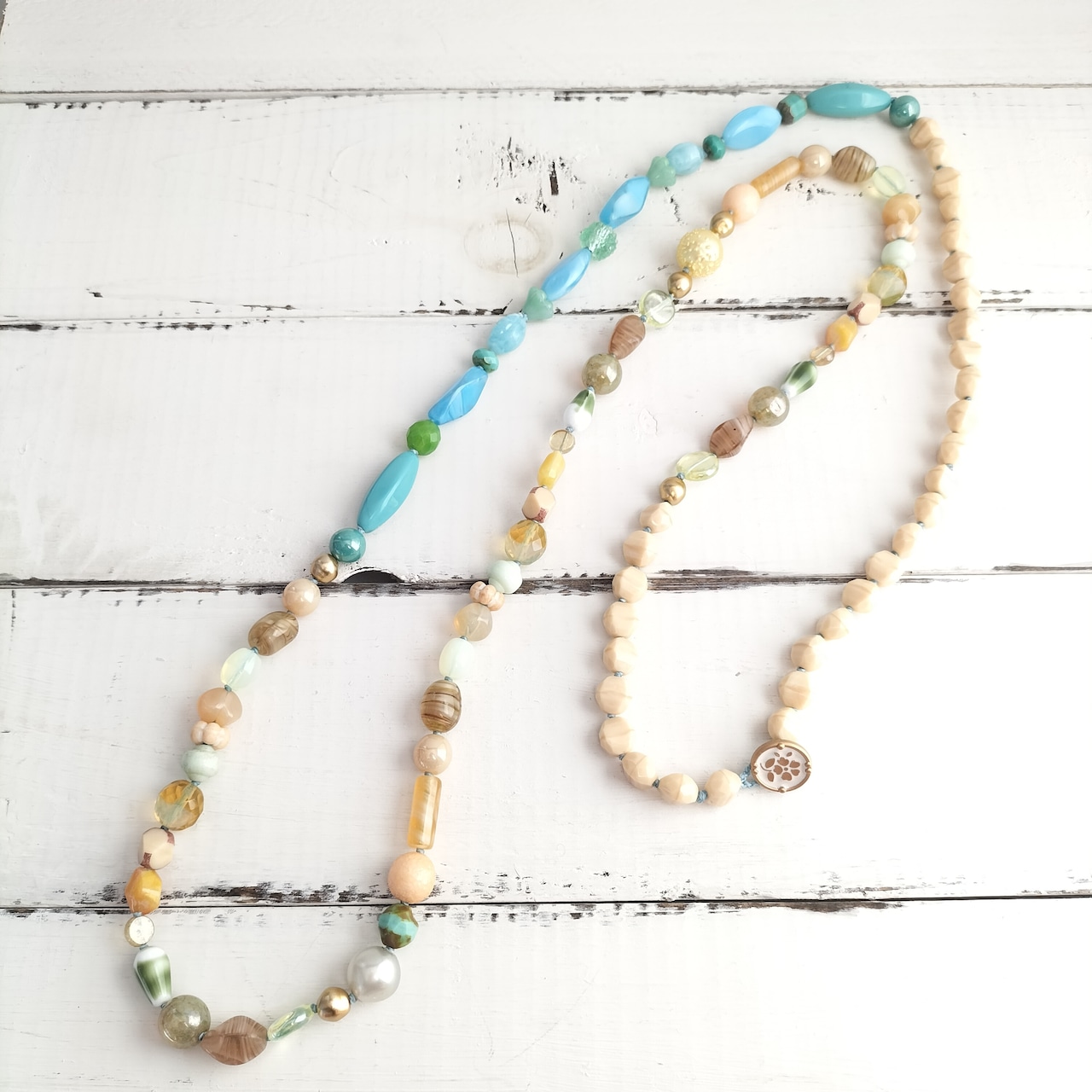 ベージュ系アンティークビーズと夏空色のヴィンテージビーズの