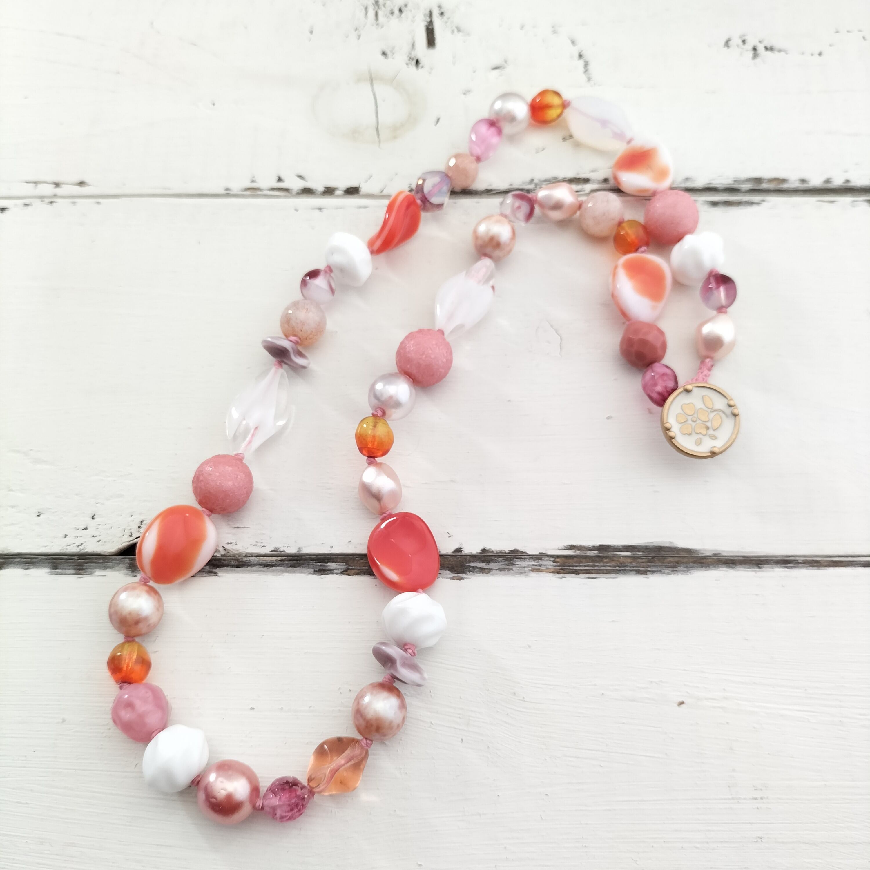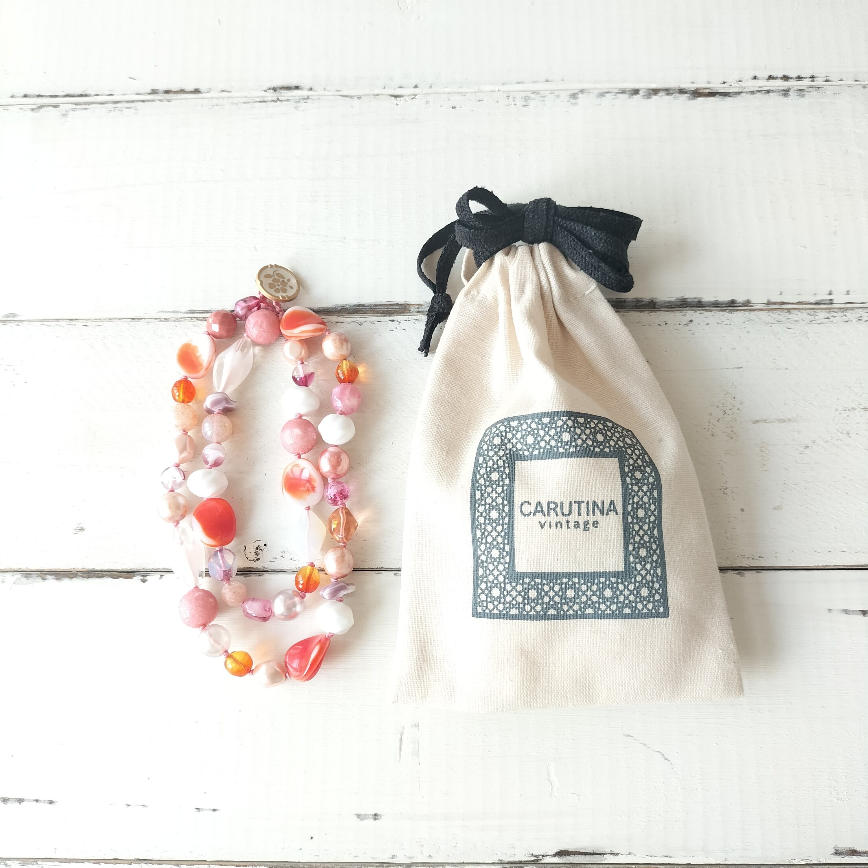 年代物ビーズの繊細な色合いや質感を活かして自然光で撮影しておりますが、